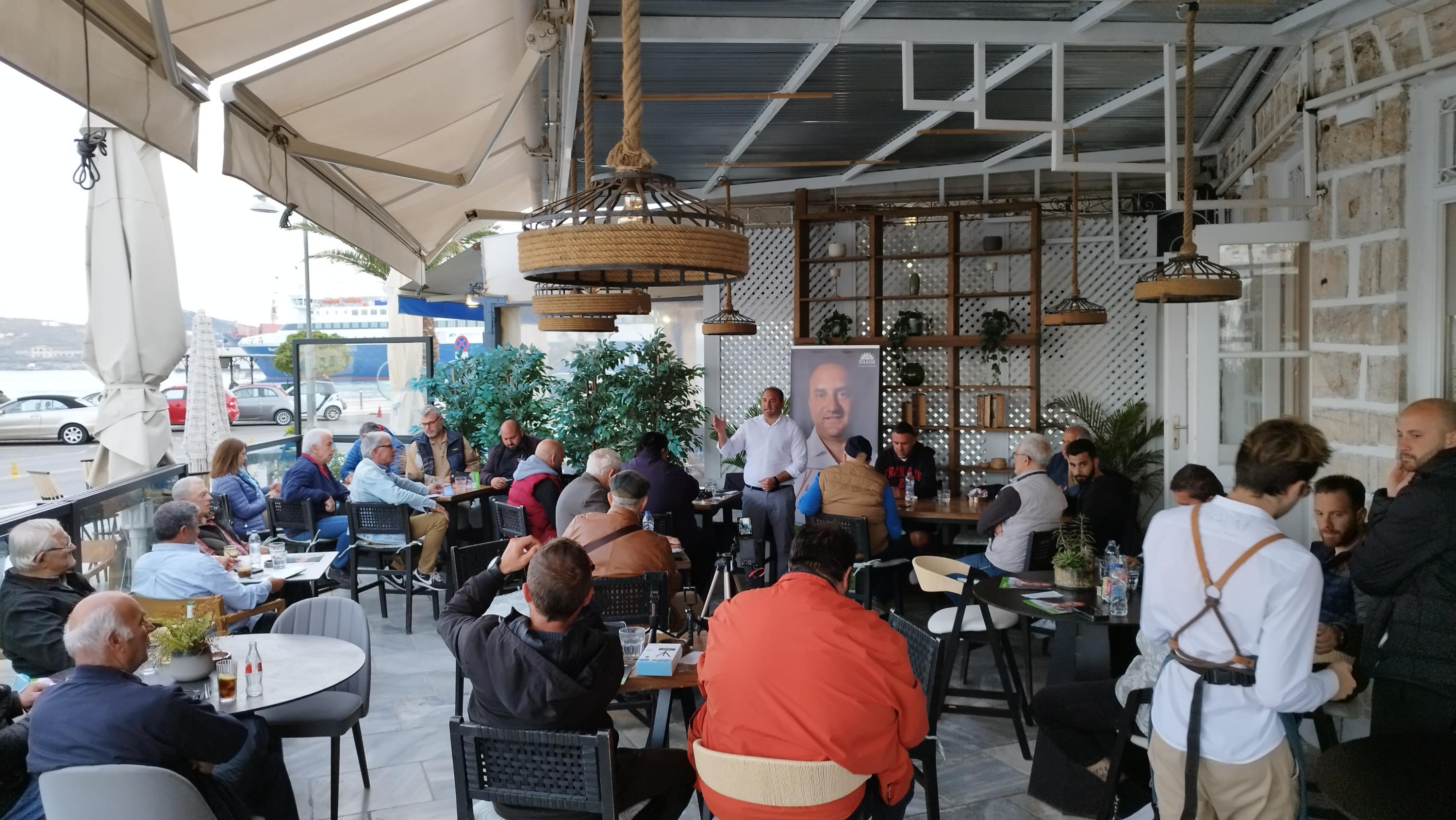 Πολιτική εκδήλωση του υποψήφιου βουλευτή Κυκλάδων και αναπληρωτή τομεάρχη νησιωτικής πολιτικής του ΠΑΣΟΚ - ΚΙΝΑΛ, Γιάννη Πολυχρονάκου στη Σύρο