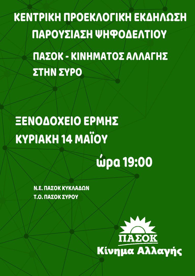 ΠΑΣΟΚ - ΚΙΝΑΛ: Κεντρική προεκλογική εκδήλωση στη Σύρο