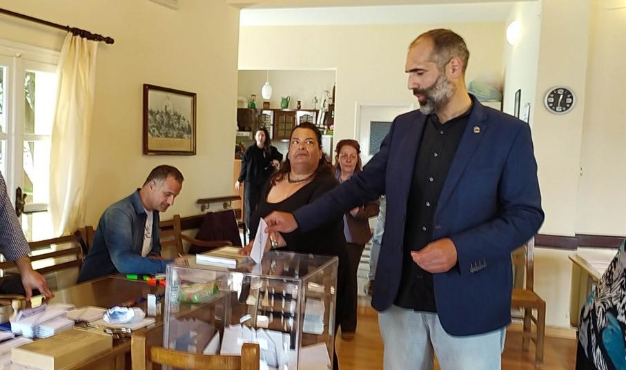 Στο εκλογικό τμήμα της Άνω Σύρου ψήφισε ο υποψήφιος βουλευτής Κυκλάδων με το ΚΚΕ, Νικόλαος Καΐλης.