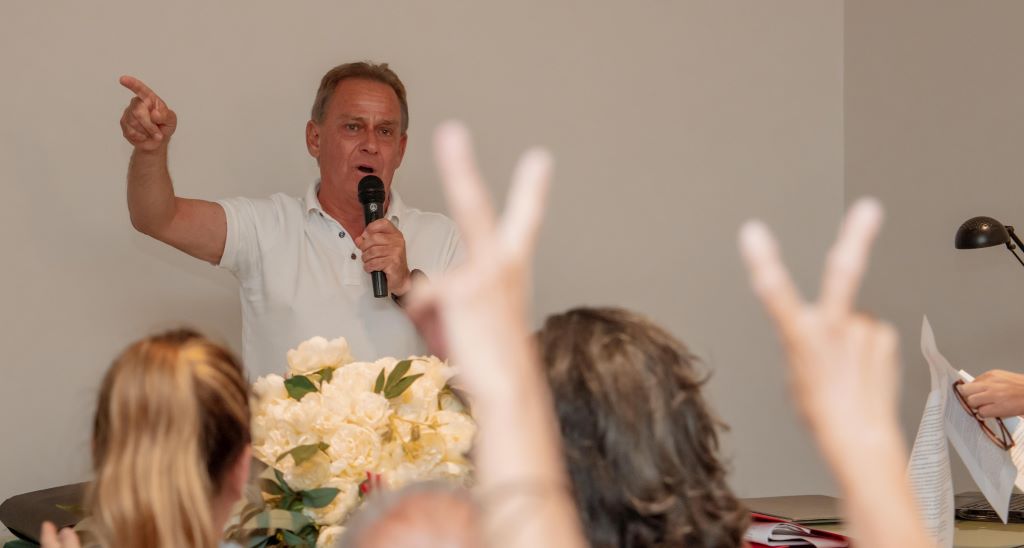 Ο κ. Βερώνης καλωσόρισε όλα τα μέλη της παράταξής του τονίζοντας ότι τους ενώνει η αγάπη τους για τη Μύκονο και οι προσδοκίες για μία καλύτερη ζωή σε αυτό τον τόπο. Παράλληλα τα ευχαρίστησε που αντιστάθηκαν στο κλίμα που προσπάθησαν να καλλιεργήσουν ορισμένοι «ότι όποιος δεν είναι μαζί μας είναι εχθρός μας».
