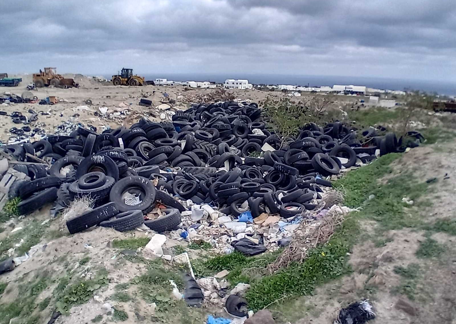 "Τα τελευταία χρόνια έχουν συγκεντρωθεί στην είσοδο του ΧΑΔΑ Θήρας μεταχειρισμένα ελαστικά που εκτιμώνται σε 500 μικρά λάστιχα αυτοκινήτων και 350 μεγάλα λάστιχα φορτηγών.