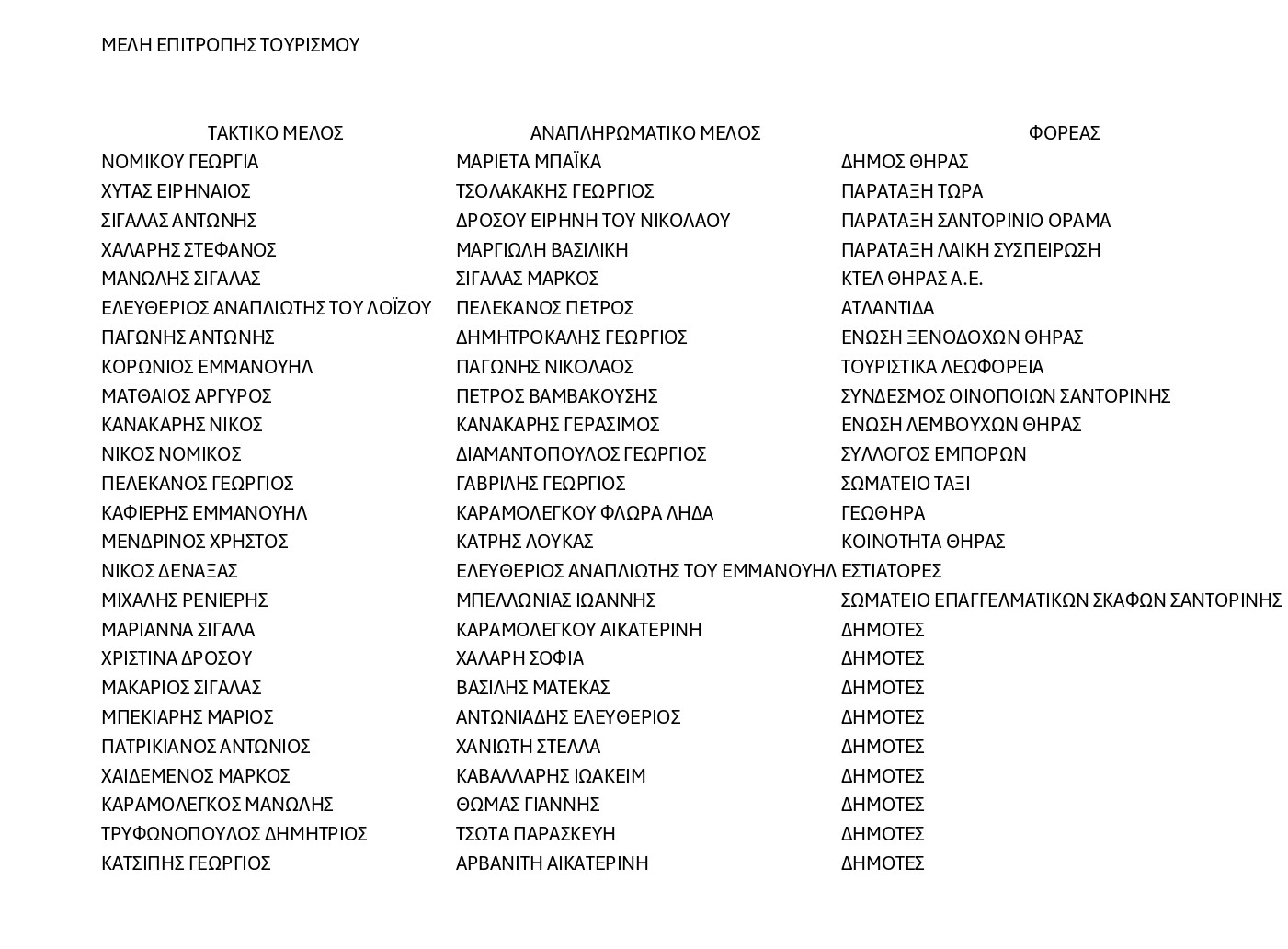 Με ομόφωνες αποφάσεις του το Δημοτικό Συμβούλιο του Δήμου Θήρας προχώρησε στην σύσταση των Επιτροπών Τουρισμού, Πολιτισμού & Περιβάλλοντος και Αθλητισμού του Δήμου.