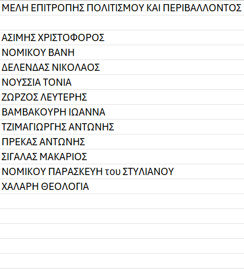Στα συνημμένα αρχεία μπορείτε να ενημερωθείτε για τα ονόματα των συμπολιτών μας που απαρτίζουν τις Επιτροπές.