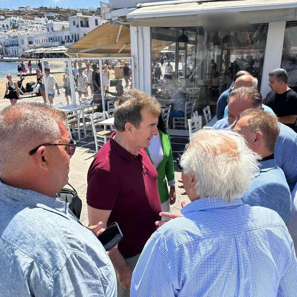 Ο κ. Υπουργός επισκέφθηκε σήμερα, Παρασκευή 2 Αυγούστου 2024 το νησί της Μυκόνου και συναντήθηκε με τον Δήμαρχο Χρήστο Βερώνη, ενώ στη συνέχεια προήδρευσε σύσκεψης, στην οποία συμμετείχαν ο Αντιπεριφερειάρχης, Στέλιος Μπρίγγος, ο Πρόεδρος του Περιφερειακού Συμβουλίου, Σπύρος Αποστόλου, Αντιδήμαρχοι, μέλη του Δημοτικού Συμβούλιου, Αξιωματικοί της ΕΛ.ΑΣ και του Λιμενικού, Εκπρόσωποι από το Ξενοδοχειακό Επιμελητήριο, από τα Ενοικιαζόμενα Δωμάτια, τα ΚΤΕΛ, τους αυτοκινητιστές, τα Πρακτορεία Ενοικιάσεως Αυτοκινήτων, τη Fraport, την ΥΠΑ, τον χώρο της εστίασης και των κέντρων διασκέδασης.