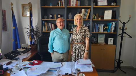 Η βουλευτής Κυκλάδων της Νέας Δημοκρατίας κ. Κατερίνα Μονογυιού, στο πλαίσιο της περιοδείας της στη Σαντορίνη, πραγματοποίησε συνάντηση εργασίας με τον Δήμαρχο Θήρας, κ. Νίκο Ζώρζο. Στη συνάντηση, συζητήθηκε το ομόφωνα ψηφισθέν από την Τουριστική Επιτροπή Θήρας,  Ειδικό Χωροταξικό Σχέδιο για τον Τουρισμό, που αποτελεί σημαντική πρωτοβουλία για την αειφόρο ανάπτυξη των Κυκλάδων. Παράλληλα, συζητήθηκε η προτεινόμενη αύξηση του τέλους κρουαζιέρας, ένα θέμα που άπτεται των οικονομικών και περιβαλλοντικών προκλήσεων που αντιμετωπίζουν τα νησιά.