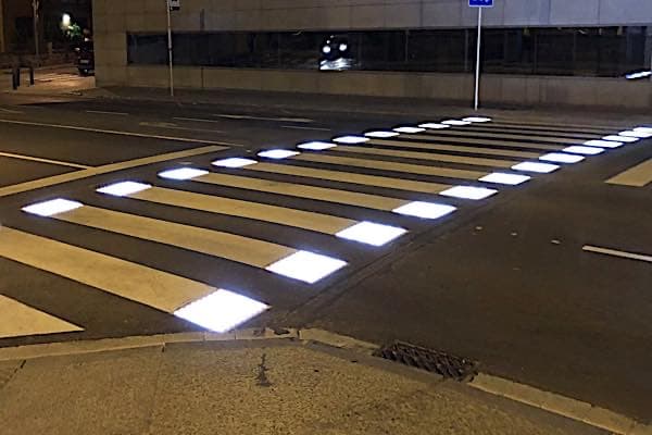 2. Συσκευές φωτεινής σήµανσης οδοστρώµατος και πεζοδροµίου τύπου LED. Οι συσκευές φωτεινής σήµανσης οδοστρώµατος και πεζοδροµίου, θα εγκατασταθούν σε όλο το µήκος της κάθε διάβασης πεζών, εκατέρωθεν του κάθε zebra line της πεζοδιάβασης και σε απόσταση ενός µέτρου (1m) µεταξύ τους, µε σκοπό την καλύτερη οριοθέτησή της και την ενίσχυση της οριζόντιας σήµανσης.