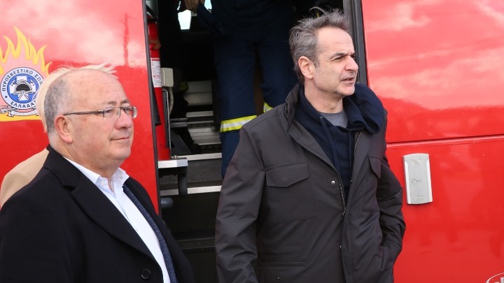 Τη Σαντορίνη επισκέπτεται ο πρωθυπουργός Κυριάκος Μητσοτάκης, συνοδευόμενος από τον υπουργό Κλιματικής Κρίσης και Πολιτικής Προστασίας, Βασίλη Κικίλια. Ο κ. Μητσοτάκης μετέβη στο πυροσβεστικό Κλιμάκιο Θήρας, στο κινητό επιχειρησιακό κέντρο Όλυμπος, στο Γενικό Νοσοκομείο Θήρας καθώς και στο Κλειστό Γυμναστήριο ΔΑΠΠΟΣ όπου έχουν στήσει τις σκηνές τους οι μονάδες της ΕΜΑΚ και της ΕΜΟΔΕ.
