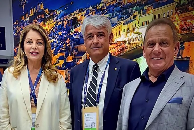 Με την πρόεδρο του Ε.Ο.Τ, Άντζελα Γκερέκου και τον γενικό γραμματέα του Οργανισμού, Ανδρέα Φιορεντίνο βρέθηκε ο δήμαρχος Μυκόνου, Χρήστος Βερώνης στην Διεθνή Έκθεση Τουρισμού Arabian Travel Market 2025 που άνοιξε σήμερα τις πύλες της στο Ντουμπάι.