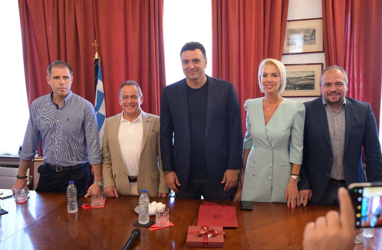 Έπειτα, ο κ. Κικίλιας μετέβη στο Δημαρχείο του νησιού όπου τον υποδέχθηκαν οι Βουλευτές Κυκλάδων, Κατερίνα Μονογιού και Φίλιππος Φόρτωμας, καθώς και ο Δήμαρχος Μυκόνου, Χρήστος Βερώνης και πραγματοποιήθηκε σύσκεψη με τη συμμετοχή εκπροσώπων της τοπικής αυτοδιοίκησης και των τοπικών αρχώξν για θέματα και ζητήματα που αφορούν στην τοπική κοινωνία, στις ανάγκες και στις υποδομές του νησιού.
