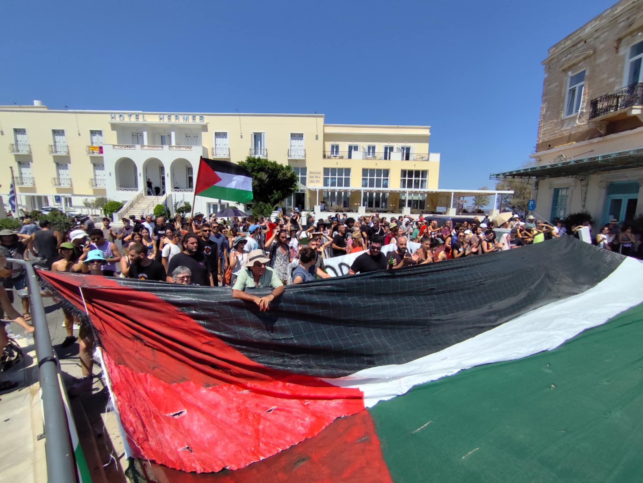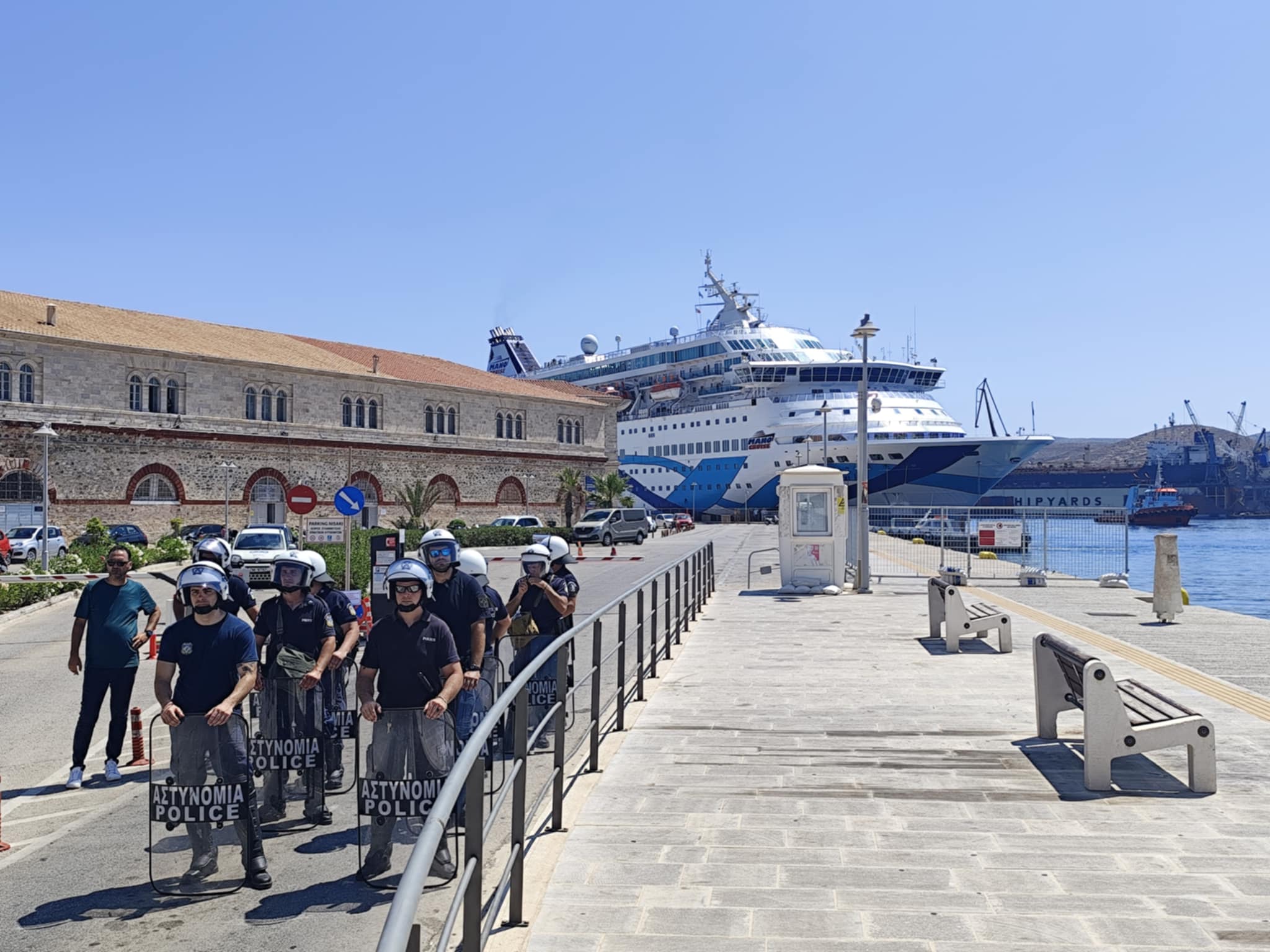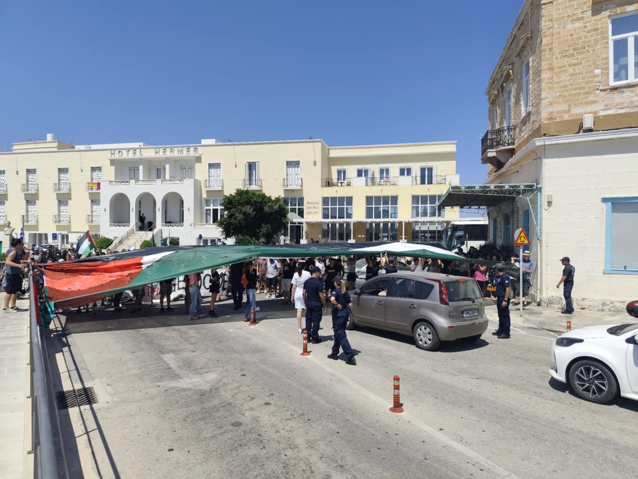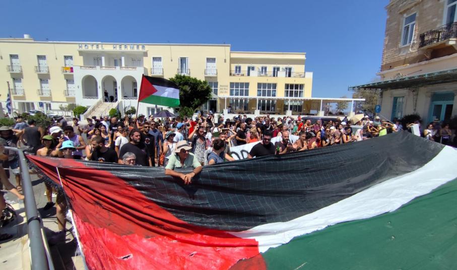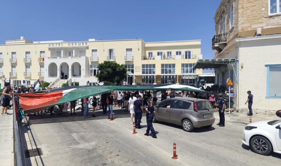 Η αναχώρηση έγινε τρεισήμισι ώρες γρηγορότερα από την προγραμματισμένη ώρα (18.30), καθώς οι επισκέπτες δεν μπόρεσαν να αποβιβαστούν στην Ερμούπολη. Υπενθυμίζεται πως οι περίπου 1.700 επιβάτες, που στην πλειοψηφία τους ήταν Ισραηλινής καταγωγής, παρέμειναν όλες τις ώρες στο κρουαζιερόπλοιο, παρακολουθώντας τη διαδήλωση, από τα καταστρώματα, κρατώντας σημαία του Ισραήλ.