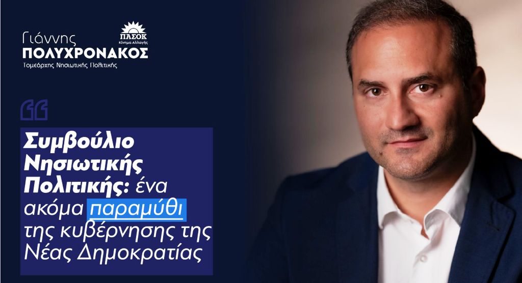 Τα σημαντικά ζητήματα που απορρέουν από τη νησιωτικότητα, επαναφέρει ο τομεάρχης Νησιωτικής Πολιτικής του ΠΑΣΟΚ, Γιάννης Πολυχρονάκος, με φόντο τη λειτουργία του Συμβουλίου Νησιωτικής Πολιτικής, θέτοντας παράλληλα καίρια ερωτήματα στην κυβέρνηση.