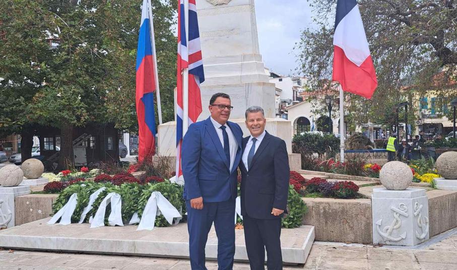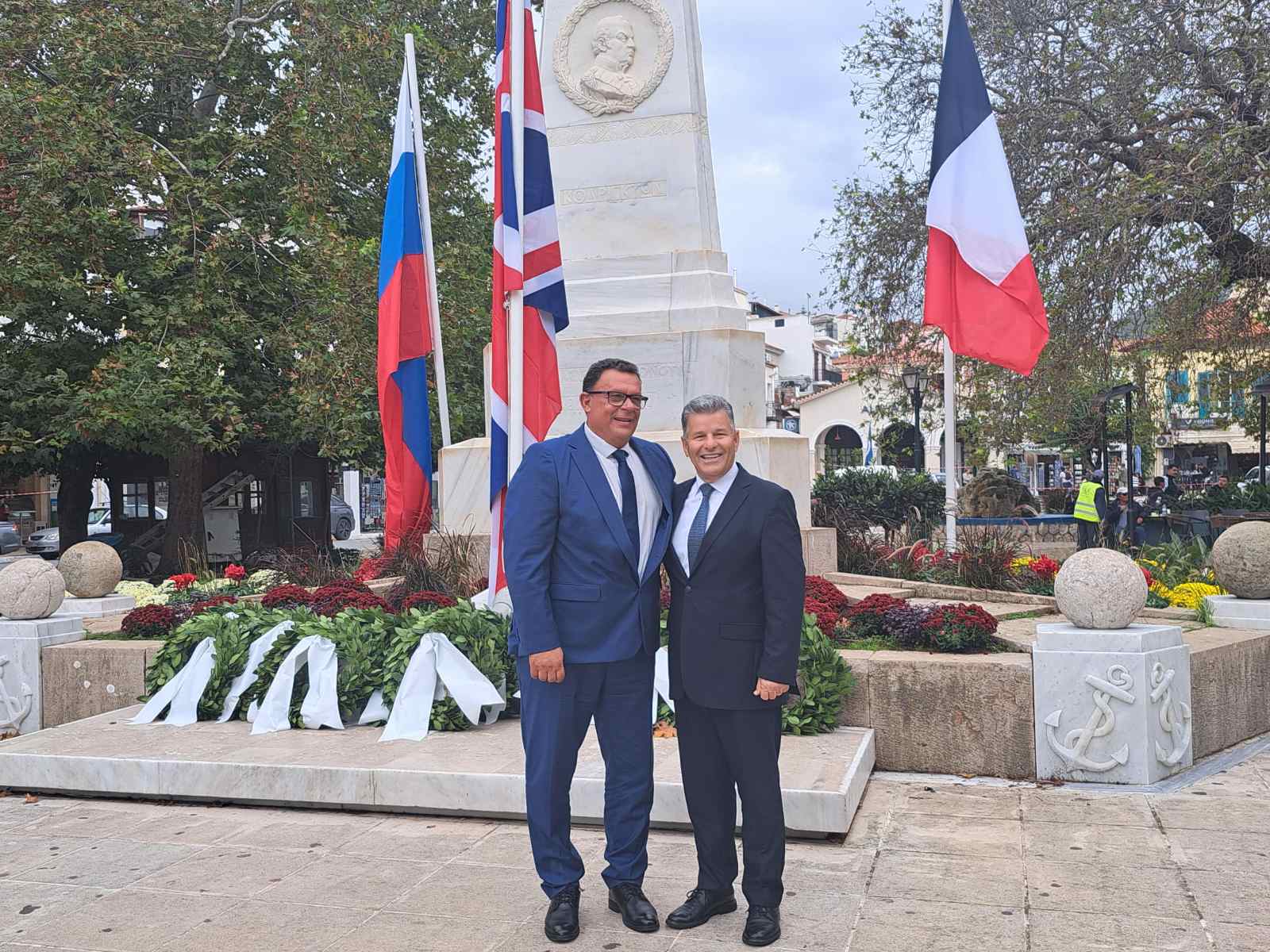 Τη Γαλλική Κυβέρνηση εκπροσώπησε ο κ. Αριστείδης Μουτζούρης, υπογραμμίζοντας τη διαρκή φιλία και συνεργασία των δύο χωρών και τον ιστορικό ρόλο της Γαλλίας στη Ναυμαχία του Ναβαρίνου.