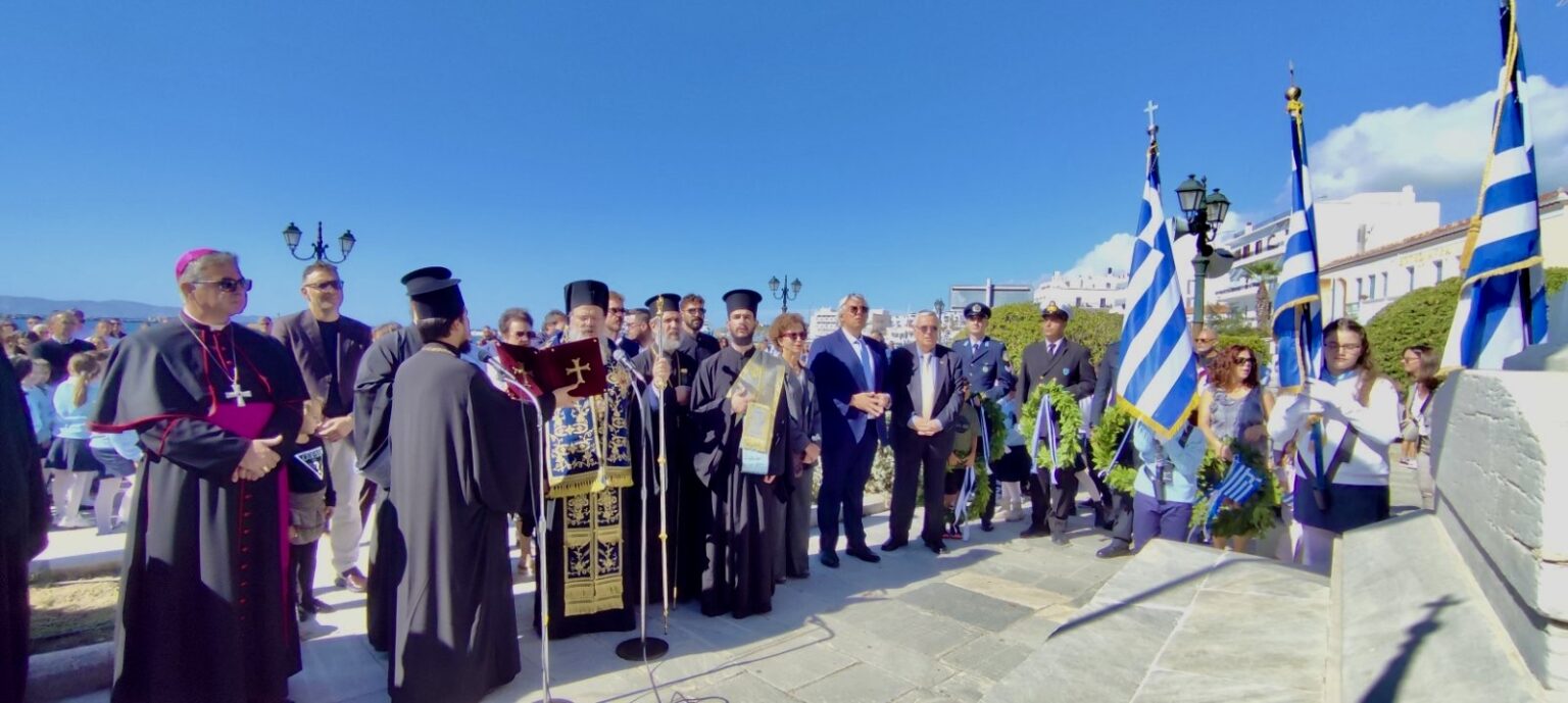 Για την Τήνο, η σημερινή επέτειος είναι βαθιά χαραγμένη στη συλλογική μας μνήμη. Ο τόπος μας βίωσε, νωρίτερα από κάθε άλλο, την πρόκληση της εποχής, με τον ύπουλο τορπιλισμό του ευδρόμου «Έλλη» στο λιμάνι μας, ανήμερα της μεγάλης εορτής της Παναγίας, τον Αύγουστο του 1940. Ωστόσο, το αλύγιστο φρόνημα των Τηνίων και ολόκληρου του Έθνους έδωσε το στίγμα της απάντησης που θα ακολουθούσε: την περήφανη άρνηση της 28ης Οκτωβρίου.