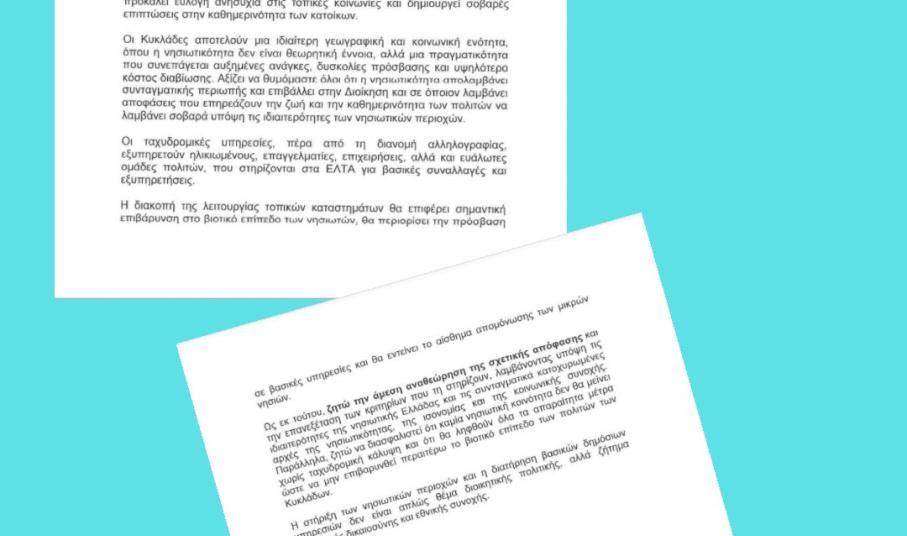 «Η στήριξη των νησιωτικών περιοχών και η διατήρηση βασικών δημόσιων υπηρεσιών δεν είναι απλώς θέμα διοικητικής πολιτικής, αλλά ζήτημα κοινωνικής δικαιοσύνης και εθνικής συνοχής», επισημαίνει ο Βουλευτής Κυκλάδων.