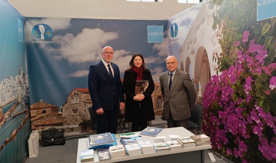 Στην έκθεση παρευρέθηκαν ο Δήμαρχος Πάρου Κώστας Μπιζάς, η Πρόεδρος της Δημοτικής Κοινότητας Νάουσας και Πρόεδρος της Επιτροπής Τουριστικής Ανάπτυξης του Δήμου Κατερίνα Μπαρμπαρίγου, καθώς και ο Σύμβουλος Τουρισμού του Δήμου Νότης Μαρτάκης. Το περίπτερο του Δήμου εκπροσώπησαν τα μέλη της Τουριστικής Επιτροπής Νικόλας Κυδωνιεύς και Κυριακή Καρποδίνη.