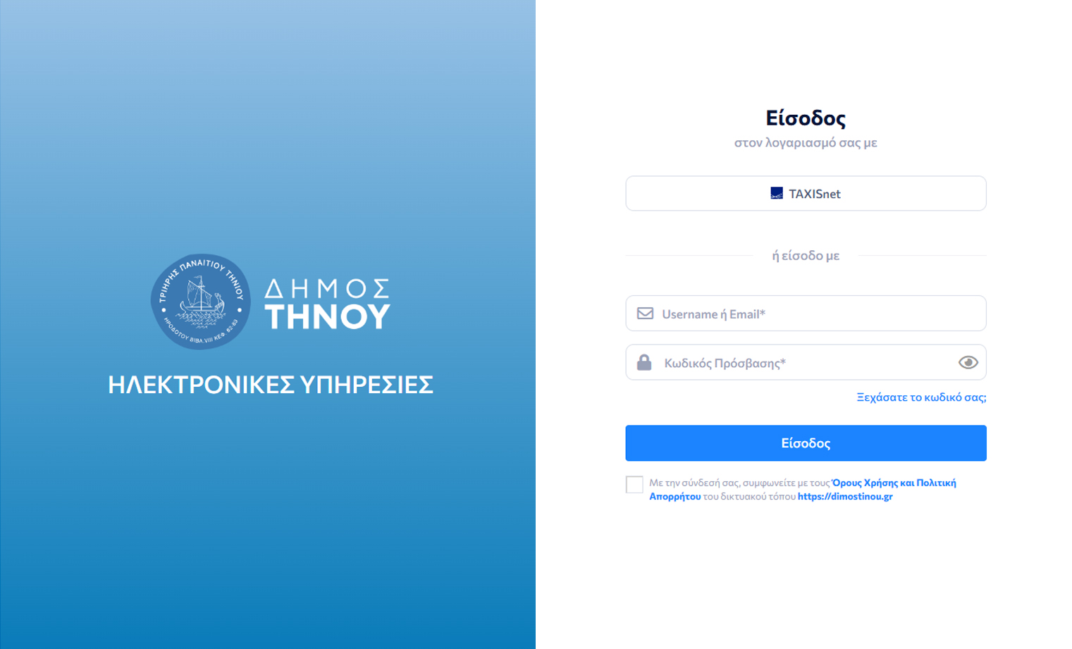 Ο Δήμος Τήνου ενημερώνει τους δημότες ότι η μετάβαση στο νέο πληροφοριακό σύστημα έχει ολοκληρωθεί. Εκκρεμεί πλέον η ολοκλήρωση και η επανενεργοποίηση του συστήματος Ηλεκτρονικών Υπηρεσιών (πρώην ΣΔΟΠΣ), το οποίο βρίσκεται στο τελικό στάδιο δοκιμών με την τράπεζα, ώστε να διασφαλιστεί η ομαλή και ασφαλής λειτουργία του.