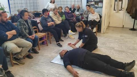 Το σεμινάριο περιελάμβανε την τεχνική της Καρδιοπνευμονικής Αναζωογόνησης με χρήση Αυτόματου Εξωτερικού Απινιδωτή, Αντιμετώπιση Πνιγμονής και Θέση Ασφαλείας.