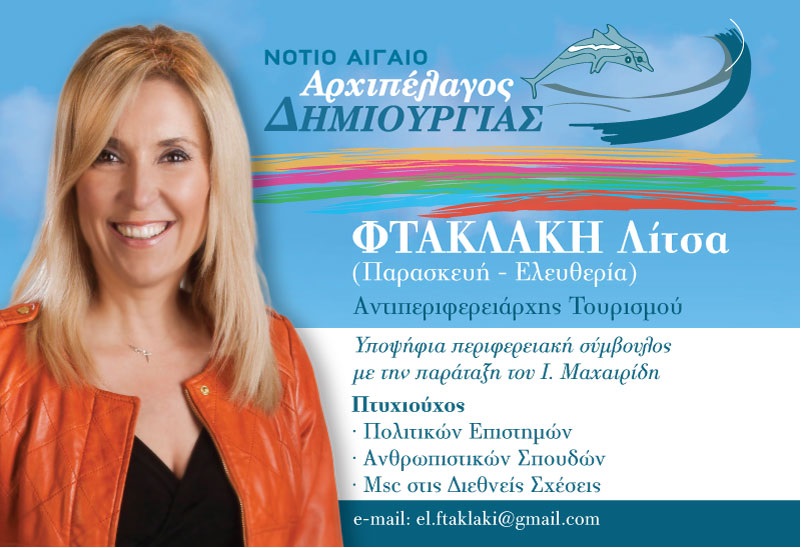 Συμμετέχω λοιπόν στην αναμέτρηση των περιφερειακών εκλογών με το ψηφοδέλτιο «Νότιο Αιγαίο – Αρχιπέλαγος Δημιουργίας» και υποψήφιο Περιφερειάρχη τον Γιάννη Μαχαιρίδη.