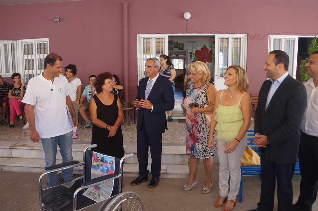 Παρών στην εκδήλωση παράδοσης αναπηρικού αμαξιδίου στο κέντρο "Ελπίδα" που πραγματοποιήθηκε το πρωί της Πέμπτης από τον Πανελλήνιο Σύλλογο Πρόληψης και Συμπαράστασης Ανήλικων Θυμάτων Τροχαίων Ατυχημάτων, ήταν ο Περιφερειάρχης Νοτίου Αιγαίου κ. Γιώργος Χατζημάρκος, προσκεκλημένος από το μέλος-αντιπρόσωπο του συλλόγου για τα Δωδεκάνησα κ.Γιώργο Καμίτση.
