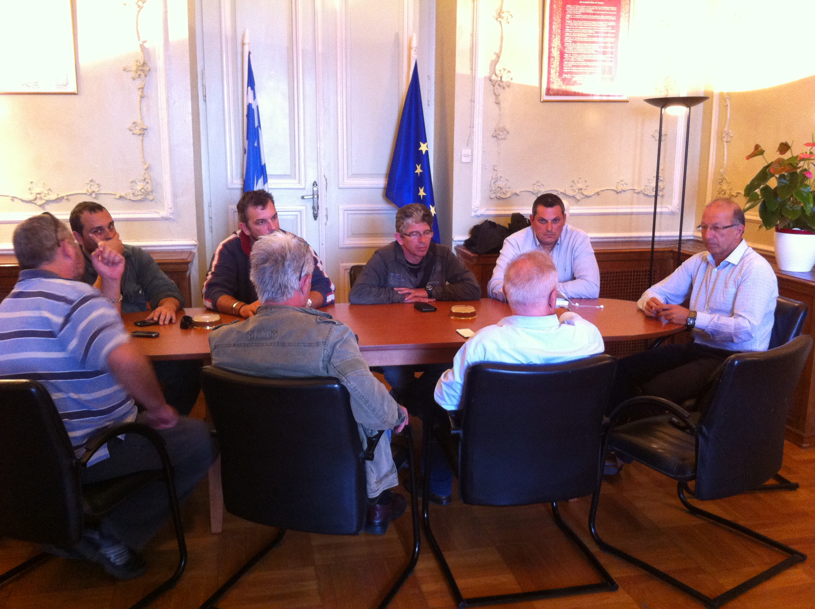Συνάντηση εθιμοτυπική με τον Αντιπεριφερειάρχη Κυκλάδων, Γιώργο Λεονταρίτη, πραγματοποίησε ο Πρόεδρος, Μάρκος Βουτσίνος και ο Γραμματέας, Γουλιέλμος Πελέκης του Εργατoϋπαλληλικού Κέντρου Κυκλάδων καθώς και μέλη του Εργοστασιακού Σωματείου του Νεωρίου Σύρου.