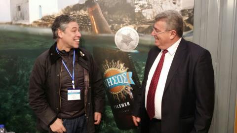 Ο ιδιοκτήτης της Μικροζυθοποιίας Κυκλάδων στην Τήνο κ. Αλέξανδρος Κουρή, με την παρουσία της μπύρας «ΝΗΣΟΣ», η οποία έχει αποσπάσει την υψηλότερη διάκριση που έχει πάρει ποτέ σε διεθνή διαγωνισμό ελληνική μπύρα, το αργυρό μετάλλιο στον διαγωνισμό European Beer Star, δήλωσε: « Χαιρετίζουμε την πρωτοβουλία της Περιφέρειας να συγκεντρώσει όλα τα νησιωτικά προϊόντα σε ένα εκθεσιακό περίπτερο και το βλέπουμε σαν την αρχή μιας οργανωμένης προσπάθειας για την προβολή μας τόσο στην εγχώρια όσο και στην διεθνή αγορά».