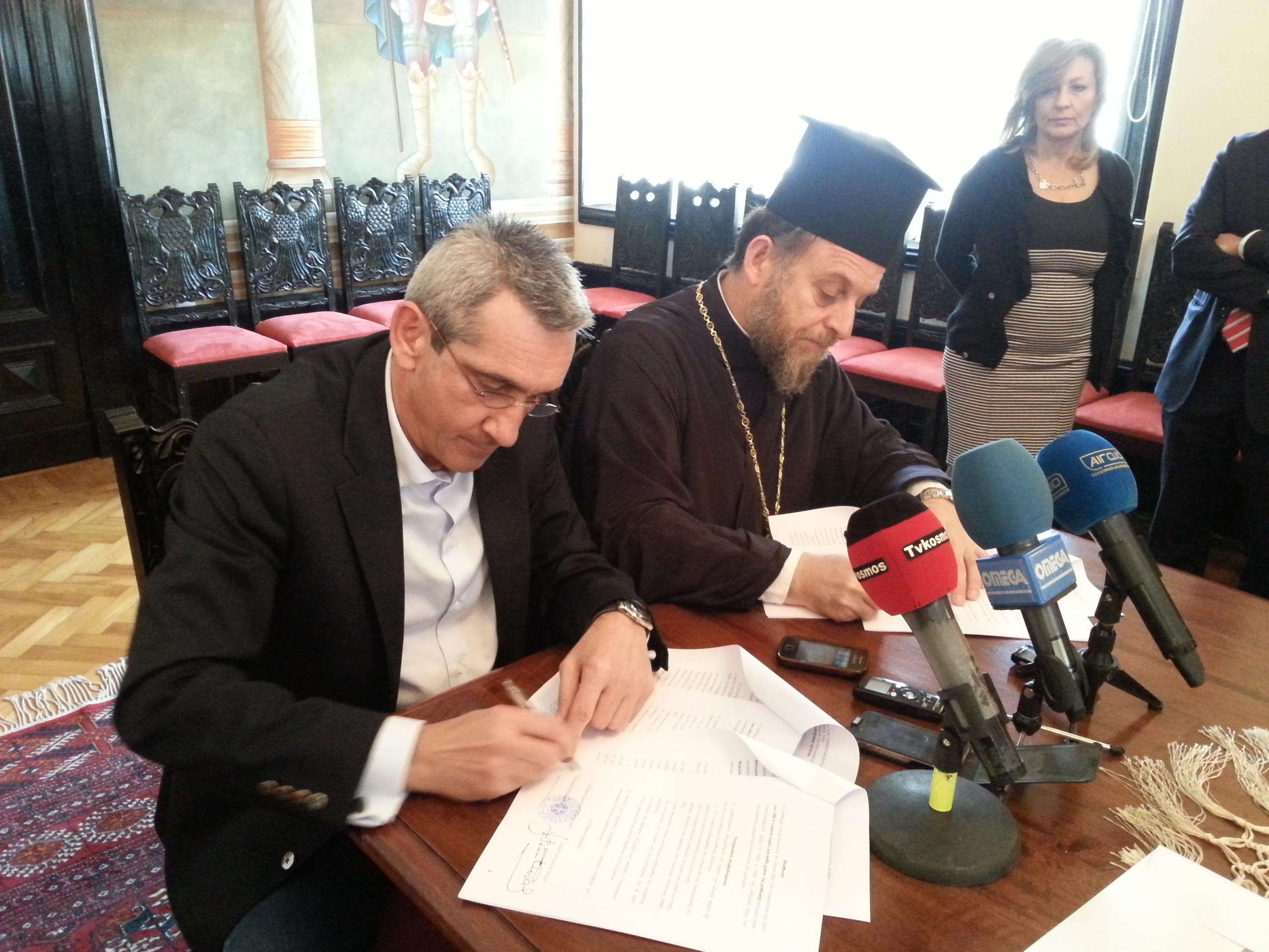 Πραγματοποιήθηκε σήμερα, Τρίτη, η υπογραφή παράδοσης από την Περιφέρεια Νοτίου Αιγαίου προς την Ιερά Μητρόπολη Ρόδου του Κέντρου Φιλοξενίας Αστέγων, μεταξύ του Περιφερειάρχη Νοτίου Αιγαίου κ. Γιώργου Χατζημάρκου και του Σεβασμιότατου Μητροπολίτη Ρόδου κ. Κυρίλλου, στην έδρα της Ιεράς Μητροπόλεως Ρόδου, παρόντων του Αντιπεριφερειάρχη Κοινωνικής Μέριμνας κ. Ηλία Ζωγραφίδη και της Εντεταλμένης Περιφερειακής Συμβούλου κας Χαρούλας Γιασιράνη.