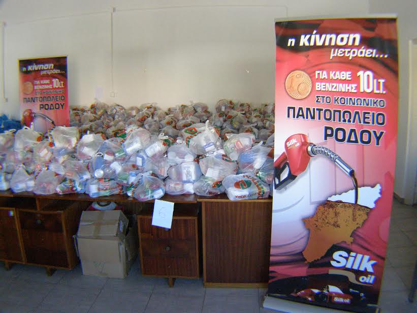 Νωρίτερα, ο κ. Χαλκιόπουλος και η κα Πάππου παρέδωσαν στο Κοινωνικό Παντοπωλείο τρόφιμα συνολικής αξίας 4.000 ευρώ. Μέσα από την δράση της Silk Oil «Η κίνηση μετράει», που υλοποιήθηκε κατά το διάστημα 15/12/2014 έως 31/03/2015, στο πλαίσιο του προγράμματος της Κοινωνικής Εταιρικής Ευθύνης της εταιρείας, συγκεντρώθηκαν 3.000 ευρώ με τα οποία αγοράστηκαν τρόφιμα σε τιμές κόστους από την εταιρεία Πάππου ΑΕ., η οποία προσέφερε επιπλέον άλλα 1.000. Ευρώ.