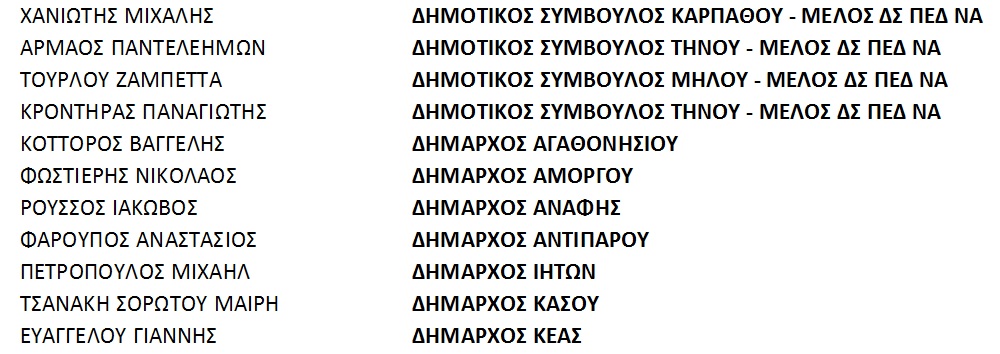 Οι Αυτοδιοικητικοί Εκπρόσωποι των νησιών του Νοτίου Αιγαίου, εκφράζοντας τις τοπικές μας Κοινωνίες, απαιτούμε από την Ελληνική Κυβέρνηση, να αποσύρει άμεσα το διχαστικό και παραπλανητικό δημοψήφισμα, που θέτει σε άμεσο κίνδυνο την ευρωπαϊκή ύπαρξη της Πατρίδας μας και την αποκόπτει από τον φυσικό της χώρο : Την Ευρώπη και τη ζώνη του Ευρώ!
