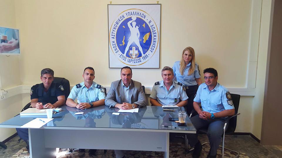 Ο Αντιπεριφερειάρχης κ. Γιάννης Φλεβάρης επισκέφτηκε τα γραφεία της Ένωσης Αστυνομικών Υπαλλήλων Ν. Δωδεκανήσου, όπου συναντήθηκε με το Διοικητικό Συμβούλιο, σε προγραμματισμένη με τον Πρόεδρο κ. Μανώλη Ανδρουλάκη συνάντηση, για να μεταφέρει τις ευχές και τη στήριξη του Περιφερειάρχη Νοτίου Αιγαίου κ. Γιώργου Χατζημάρκου και της Περιφέρειας Νοτίου Αιγαίου συνολικά στα μέλη της Ένωσης, στους συναδέλφους τους που υπηρετούν στη Δωδεκάνησο και στο Νότιο Αιγαίο και γενικότερα προς τους Έλληνες Αστυνομικούς που «ψυχή τε και σώματι» δίνουν μάχη με το έγκλημα και την ανομία για την ασφάλειά μας. Ο κ. Φλεβάρης επέλεξε να επισκεφτεί για την εορτή του Δεκαπενταύγουστου, τους Έλληνες Αστυνομικούς για να τους ευχηθεί «καλή Παναγιά», υγεία και δύναμη για να αντέχουν τις δυσκολίες που καθημερινά αντιμετωπίζουν. Τον υποδέχτηκαν ο Αντιπρόεδρος κ. Τσαμπίκος Καρυπίδης, ο Γενικός Γραμματέας κ. Ξενοφών Βασιλείου, τα μέλη του Διοικητικού Συμβουλίου κ.κ. Πασχάλης Παρθένης και Γεώργιος Βουρλούμης καθώς και η εκπρόσωπος του Ελεγκτικού κ. Κωνσταντίνα Γκέκα, οι οποίοι με συγκροτημένο και μεστό λόγο ανέπτυξαν και παρουσίασαν τις θέσεις και τις πρωτοβουλίες της Ένωσης για το σύνολο των προβλημάτων που απασχολούν τους αστυνομικούς που υπηρετούν στα νησιά μας. Ευχαρίστησαν τον Περιφερειάρχη και την Περιφέρεια που βρίσκεται στο πλευρό τους καθώς και για τις πρωτοβουλίες της Περιφερειακής Αρχής για την ανάδειξη των ζητημάτων που αφορούν την ασφάλεια, την ενίσχυση της Ελληνικής Αστυνομίας και του Λιμενικού Σώματος, το μεταναστευτικό και τη συντήρηση των κτιρίων και των εγκαταστάσεων.