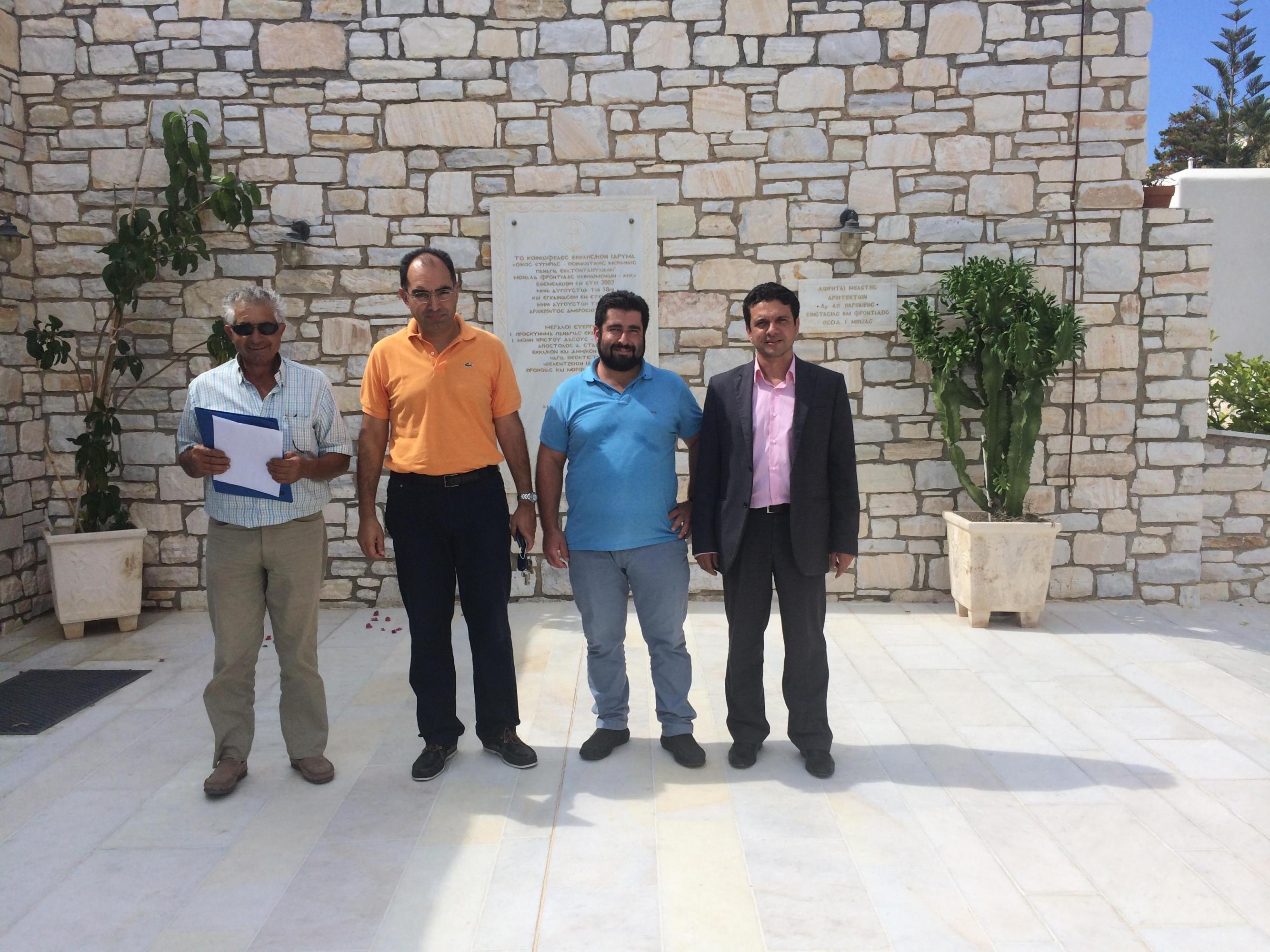 Στις 24 Σεπτεμβρίου 2015, ημέρα Πέμπτη, ο Αντιπεριφερειάρχης μετέβη στην Πάρο όπου στο λιμάνι τον υποδέχθηκε ο Έπαρχος Πάρου, κ. Κωνσταντίνος Μπιζάς και μαζί επισκέφθηκαν τον Ιερό Ναό της Παναγίας της Εκατονταπυλιανής όπου τους καλωσόρισε θερμά ο πατήρ Στυλιανός Μπιζάς. Προτού αποχωρήσουν από το χώρο του Ιερού Ναού συναντήθηκαν με εκπροσώπους της Διοικούσας Επιτροπής του Ιερού Προσκυνήματος της Παναγίας της Εκατονταπυλιανής και συγκεκριμένα με τη Γραμματέα, κυρία Διαλεκτή Αργουζή και το μέλος, κ. Ιορδάνη Νικόλαο, καθώς επίσης συνομίλησαν με τον πρώην Δήμαρχο Πάροου, κ. Αργουζή Κωνσταντίνο. Έπειτα, επισκέφθηκαν τις εγκαταστάσεις του Συλλόγου ΑΜΕΑΙ Πάρου όπου τους υποδέχθηκε η Πρόεδρος του Συλλόγου, κυρία Άννα Πολυκανδριώτη με την οποία συζήτησαν σχετικά με το έργο του Συλλόγου και τα περιθώρια στήριξής του από την Περιφέρεια Νοτίου Αιγαίου και έπειτα συναντήθηκαν με τον Πρόεδρο της Ελληνικής Ομάδας Διάσωσης Κυκλάδων, κ. Μπαρμπαρήγο – Παπαδάκη Γιώργο, ο οποίος μαζί με τα λοιπά μέλη της ομάδας του προσφέρουν άκοπα πολύτιμες εθελοντικές διασωστικές υπηρεσίες.