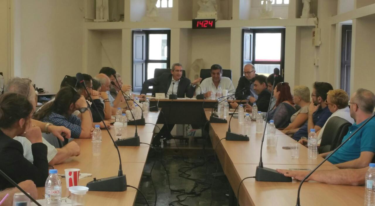 Στην Τήνο μετέβη χθες 13/10 ο Περιφερειάρχης Νοτίου Αιγαίου κ. Γιώργος Χατζημάρκος συνοδευόμενος από τους Αντιπεριφερειάρχες Κυκλάδων  και Περιφερειακής Πολιτικής και Πρωτογενούς Τομέα κ.κ. Γιώργο Λεονταρίτη και Φιλήμονα Ζαννετίδη προκειμένου να προεδρεύσει σε έκτακτη σύσκεψη φορέων που πραγματοποιήθηκε στο νησί με αντικείμενο  το συντονισμό των ενεργειών για την κατάργηση των μειωμένων συντελεστών Φ.Π.Α., μετά την απόφαση για προσφυγή στα Ανώτατα Δικαστήρια της χώρας κατά της επίμαχης κυβερνητικής απόφασης.