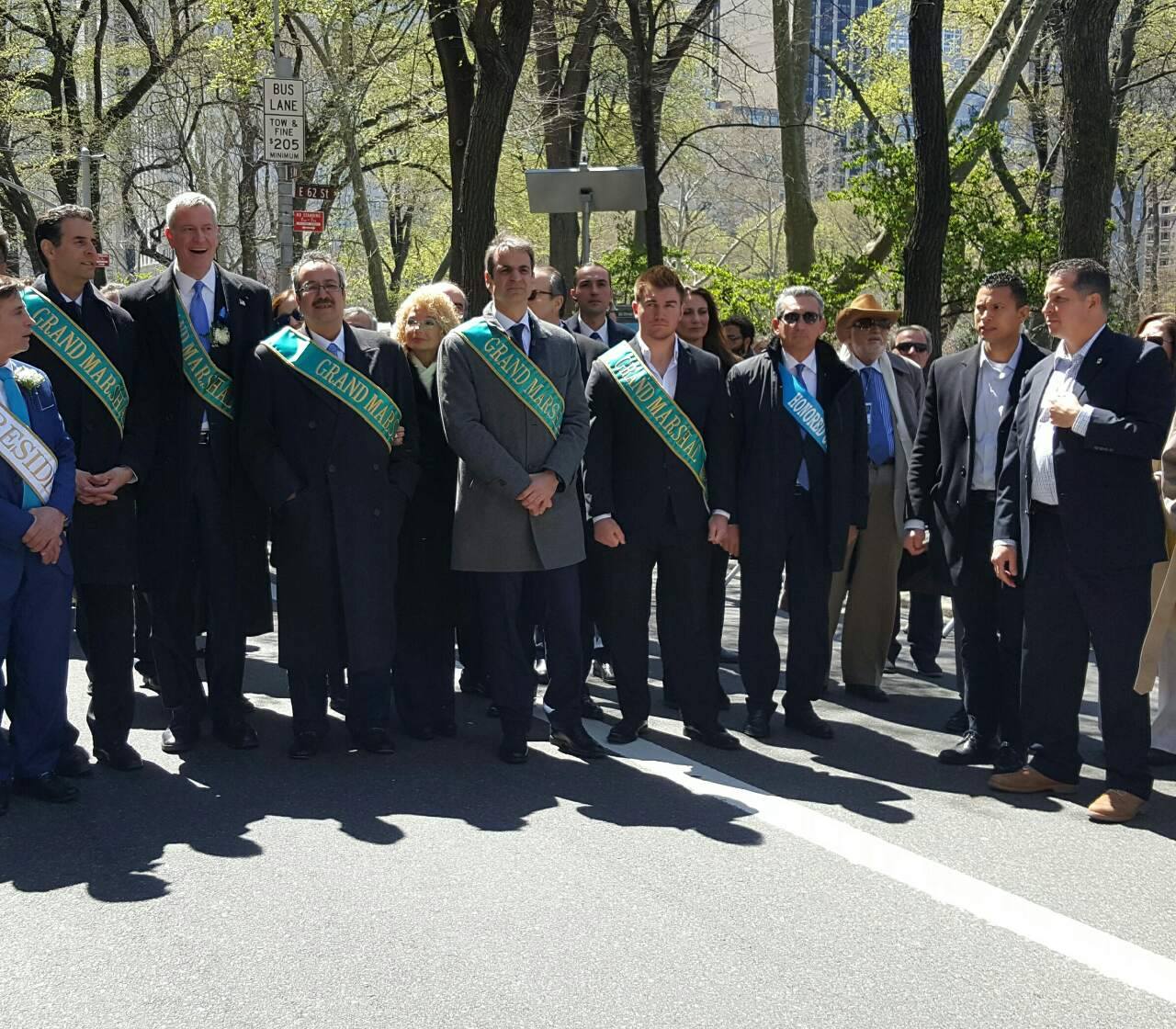 Την Ελλάδα εκπροσώπησε ο αναπληρωτής Υπουργός Εθνικής Άμυνας, Δημήτρης Βίτσας. Τελετάρχες ήταν ο Δήμαρχος της Νέας Υόρκης, Μπιλ Ντε Μπλάζιο, ο Εθνοφρουρός Άλεκ Σκαρλάτος, ο βουλευτής του Μέριλαντ, Τζον Σαρμπάνης, ο πρόεδρος της Νέας Δημοκρατίας, Κυριάκος Μητσοτάκης και ο επιχειρηματίας, Δρ. Σπύρος Σπυρέας.