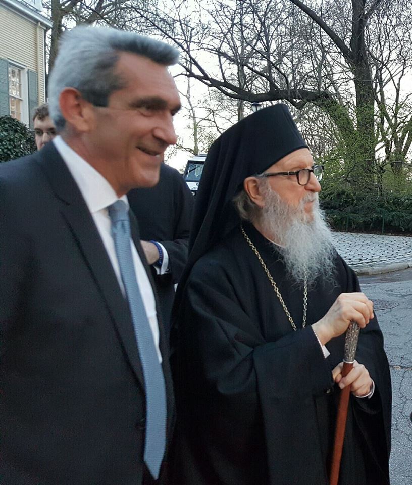 Στο πλαίσιο των επαφών του στις ΗΠΑ, ο Περιφερειάρχης Νοτίου Αιγαίου συναντήθηκε επίσης με τον Αρχιεπίσκοπο Αμερικής Δημήτριο . Η συνάντηση έγινε την περασμένη Πέμπτη 7 Απριλίου, στην κατοικία του Δημάρχου Νέας Υόρκης, στο Gracie Mansion, σε δεξίωση που παρέθεσε, προς τιμήν της Ομογένειας.