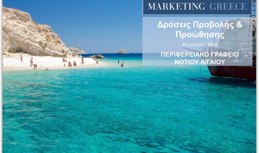 Ταυτόχρονα, οι προορισμοί του Νοτίου Αιγαίου αποτέλεσαν σημαντική ενότητα της προώθησης της ψηφιακής πλατφόρμας Discovergreece.com και του οικοσυστήματός της. Οι προορισμοί των Κυκλάδων και Δωδεκανήσων συγκέντρωσαν πάνω από 92.000 pageviews το μήνα Αύγουστο ενώ προσωπικότητες από το χώρο των γραμμάτων και των τεχνών, «φωτογραφίζουν» στο blog του Discovergreece.com, “MyViewofGreece”, τις δικές τους στιγμές σε έναν αγαπημένο τους αιγαιοπελαγίτικο προορισμό.