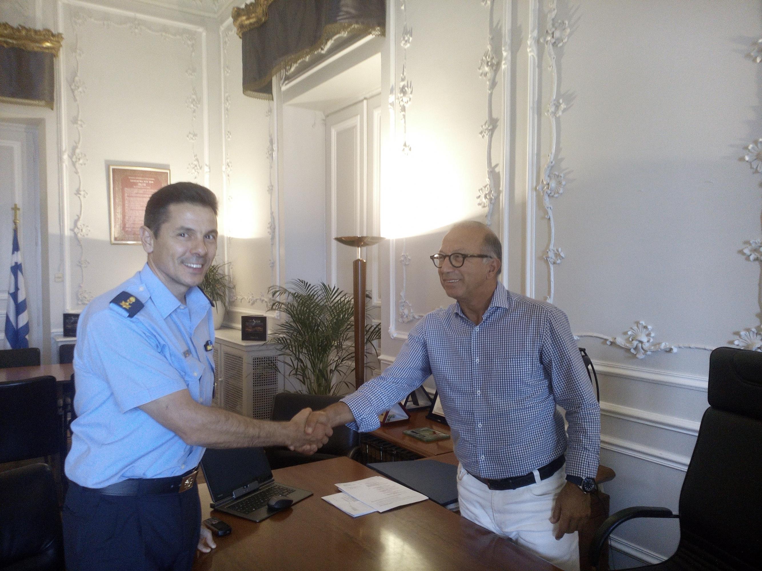 Τον Αντιπεριφερειάρχη Κυκλάδων και Πολιτικό Προϊστάμενο της Διεύθυνσης Πολιτικής Προστασίας Κυκλάδων κ. Γιώργο Λεονταρίτη επισκέφθηκαν χθες το πρωί στο γραφείο του, ο  Διοικητής της Περιφερειακής Πυροσβεστικής Διοίκησης Νοτίου Αιγαίου, Αρχιπύραρχος Άγγελος Τριπολιτσιώτης και ο νέος Διοικητής της Πυροσβεστικής Υπηρεσίας Ερμούπολης,  Επιπυραγός  Μαυραγάνης Παναγιώτης.