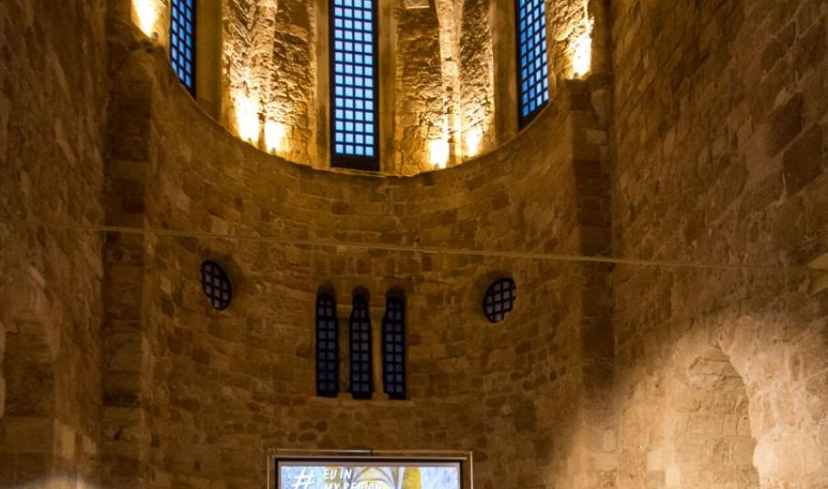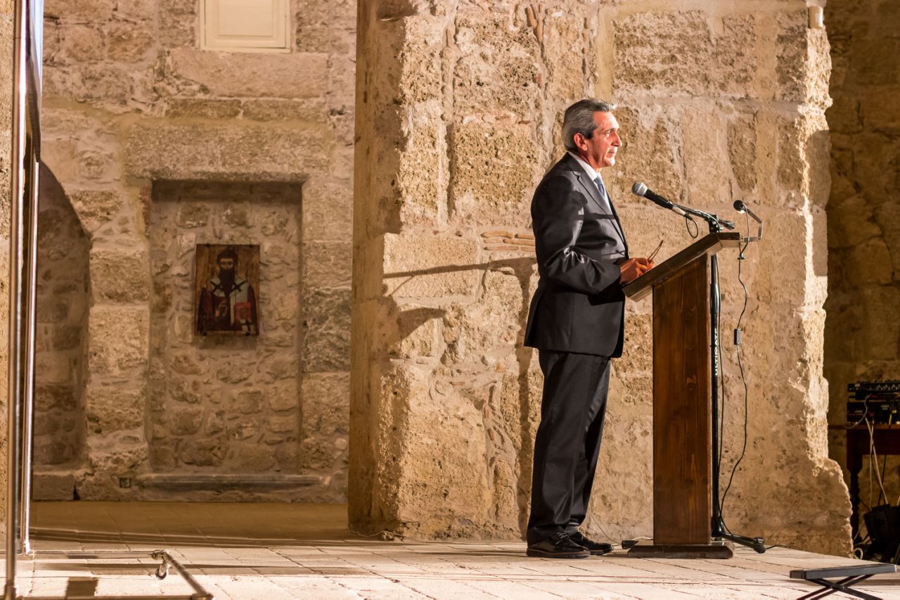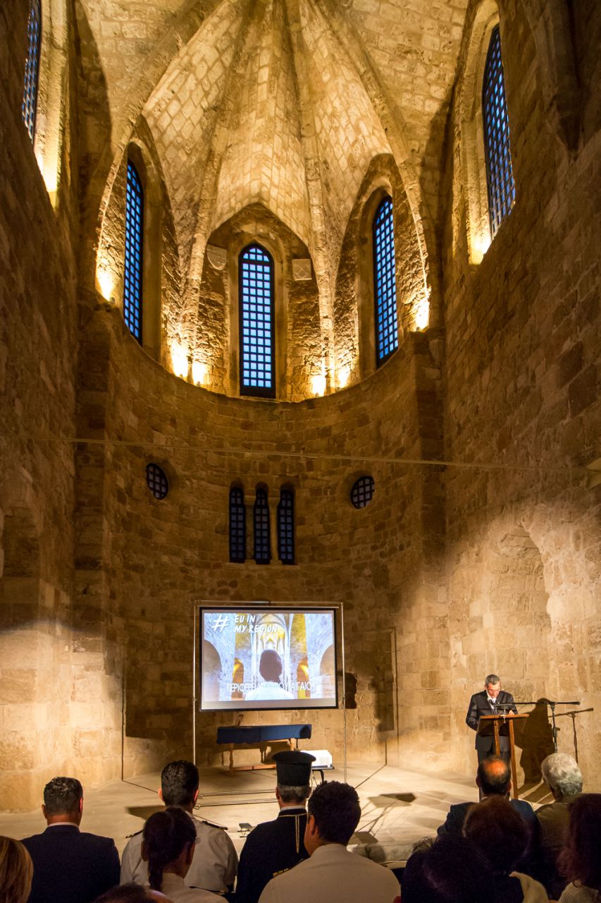 Η εκδήλωση που επελέγη για να συμπέσει με τον εορτασμό της Ημέρας της Ευρώπης – 9 Μαΐου, φιλοξενήθηκε σε ένα επιβλητικό χώρο, αυτόν της Παναγίας του Κάστρου, που χρονολογείται από τον 11ο αιώνα. Το εξαιρετικό αυτό βυζαντινό μνημείο, που αποκαταστάθηκε και αναδείχθηκε από το ΕΣΠΑ 2007-2013, με χρηματοδότηση από το Επιχειρησιακό Πρόγραμμα Κρήτης και Νήσων Αιγαίου 2007-2013, επελέγη ως χαρακτηριστικό παράδειγμα των αποτελεσμάτων της εισροής ευρωπαϊκών πόρων στην Περιφέρεια Νοτίου Αιγαίου.