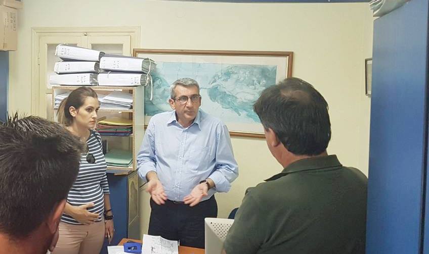 Αρχικά, είχε συνεργασία με την Έπαρχο Θήρας, Θεώνη Λειβαδάρου, στο γραφείο της, όπου εξετάστηκαν ζητήματα που βρίσκονται σε εκκρεμότητα, προκειμένου αυτά να προχωρήσουν. Αποφασίστηκε να δοθεί άμεση προτεραιότητα στη συντήρηση του οδικού δικτύου της Σαντορίνης, έργο προϋπολογισμού 500.000 ευρώ, που θα δημοπρατηθεί αμέσως μόλις ενεργοποιηθεί, από πλευράς Υπουργείου Υποδομών, η νέα διαδικασία ηλεκτρονικών διαγωνισμών δημοσίων έργων.