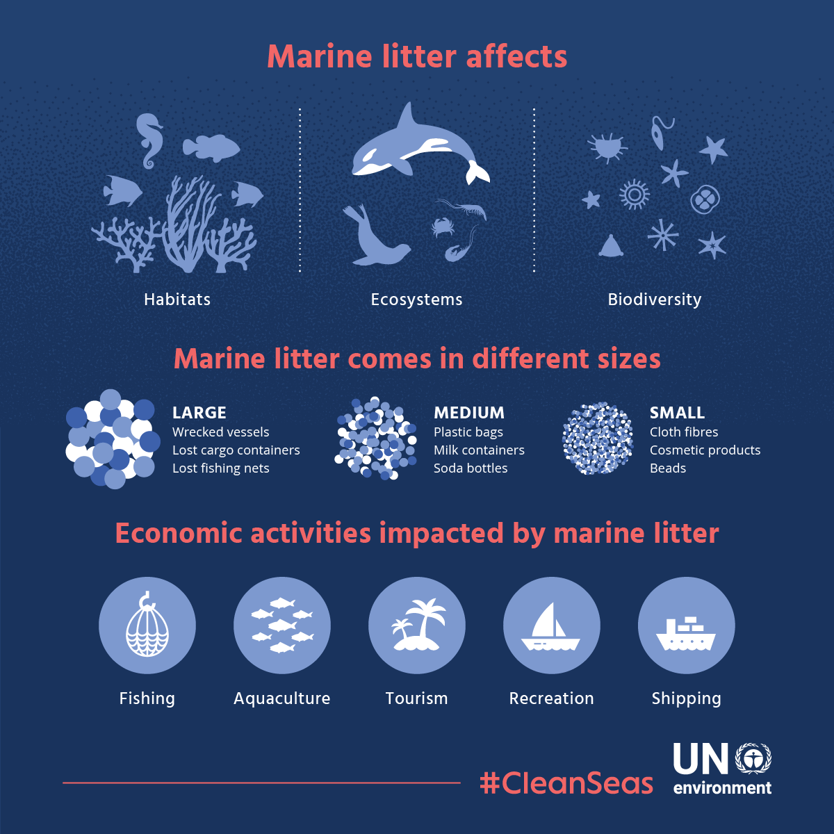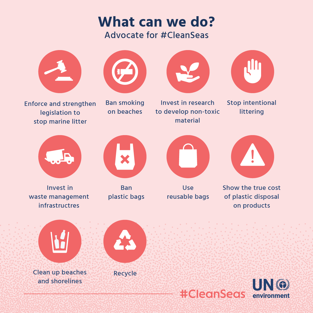 Η παγκόσμια εκστρατεία των Ηνωμένων Εθνών για τα θαλάσσια απορρίμματα με τίτλο «Καθαρές Θάλασσες» (Clean Seas Campaign), ξεκίνησε επίσημα την 23 Φεβρουαρίου στο Παγκόσμιο Συνέδριο για τους Ωκεανούς, στο Μπαλί της Ινδονησίας, και αποτελεί μέρος της πρωτοβουλίας για την επίτευξη των Στόχων του ΟΗΕ για τη Βιώσιμη Ανάπτυξη και συγκεκριμένα του Στόχου 14.1: «Μέχρι το 2025, να έχει επιτευχθεί πρόληψη και σημαντική μείωση της θαλάσσιας ρύπανσης και ειδικά αυτής που προέρχεται από δραστηριότητες στην ξηρά, συμπεριλαμβανομένων των θαλάσσιων απορριμμάτων και του ευτροφισμού».