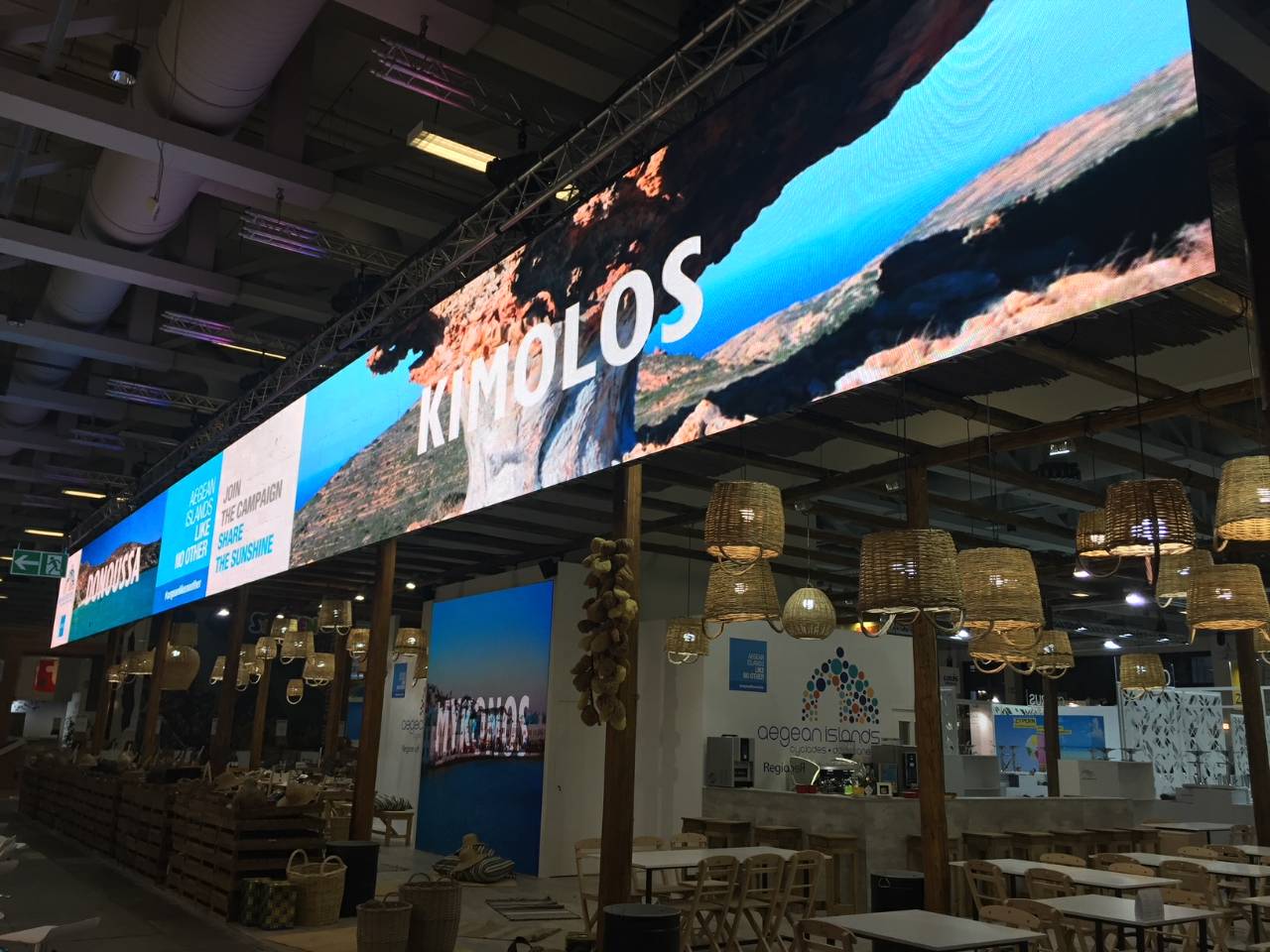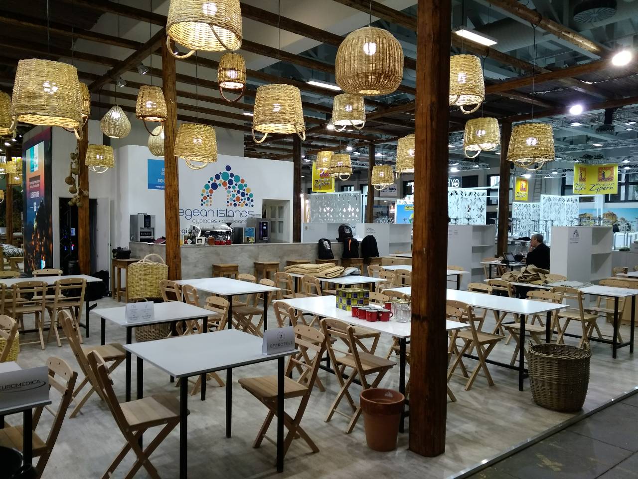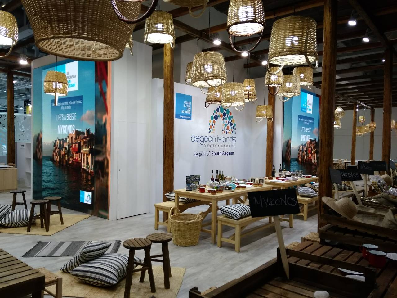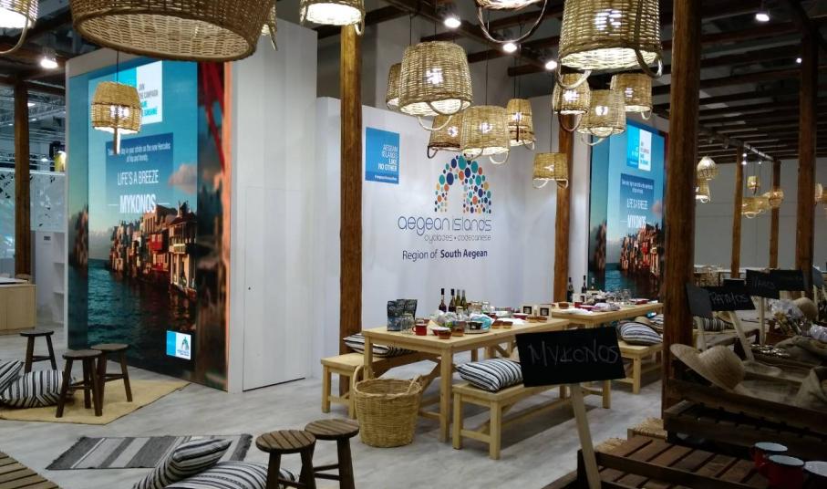 Στο περίπτερο της Περιφέρειας το οποίο ξεχωρίζει στον εκθεσιακό χώρο λόγω της αισθητικής του που αναδεικνύει την αυθεντική νησιωτική εμπειρία, παντρεύοντας αρμονικά τα παραδοσιακά με τα μοντέρνα στοιχεία, συμμετέχουν Ρόδος, η Κως, η Πάτμος, η Αστυπάλαια, η Κάρπαθος, η Λέρος και οι Λειψοί από τα Δωδεκάνησα, καθώς επίσης η Σαντορίνη, η Μύκονος, η Αμοργός, η Αντίπαρος, η Σέριφος, η Σίφνος, η Μήλος, η Φολέγανδρος, η Κύθνος, η Νάξος, η Άνδρος, η Ίος, η Κέα, η Πάρος και η Τήνος από τις Κυκλάδες Παράλληλα στο περίπτερο της Περιφέρειας φιλοξενείται και η Ομοσπονδία Ενοικιαζομένων Δωματίων και Διαμερισμάτων Δωδεκανήσου.