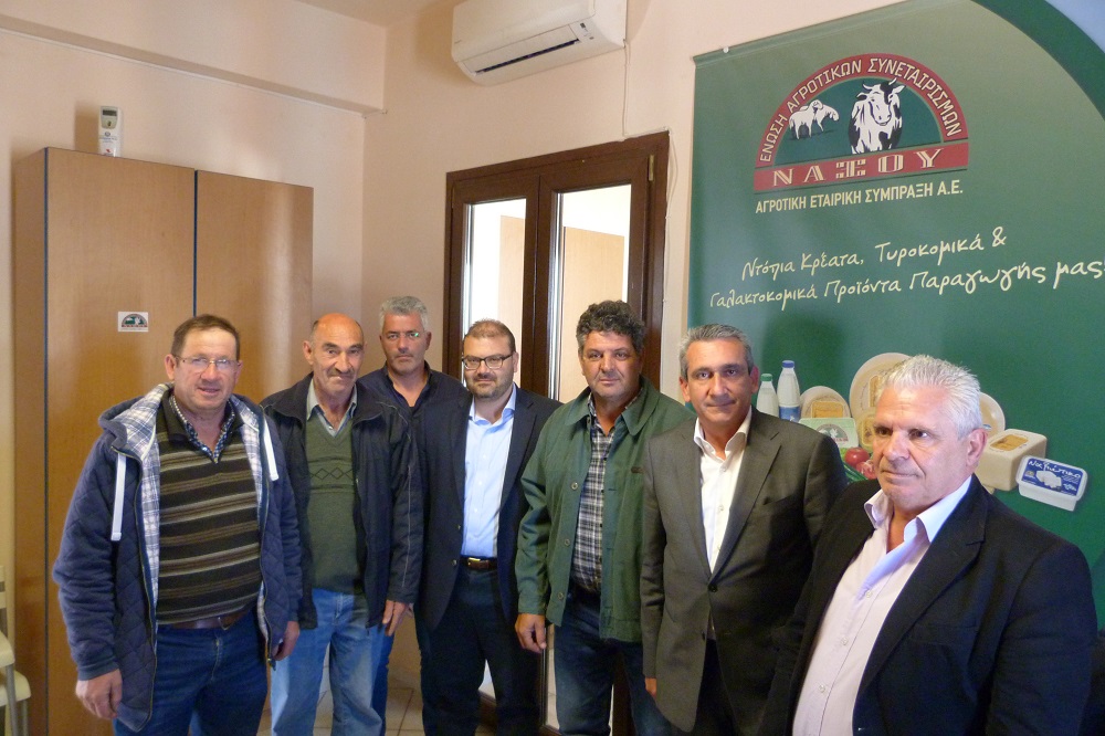 Οι εκπροσωπήσαντες τη διοίκηση της Ε.Α.Σ. Νάξου Α.Ε.Σ. Α.Ε. και οι κ.κ. Χατζημάρκος και Μαργαρίτης συζήτησαν για την επικείμενη συμμετοχή της Ε.Α.Σ. Νάξου Α.Ε.Σ. Α.Ε. στη μη κερδοσκοπική εταιρεία «Αγροδιατροφική Σύμπραξη Περιφέρειας Νοτίου Αιγαίου», σκοπός της οποίας είναι η συνένωση των παραγωγικών δυνάμεων της χώρας μας για τη στήριξη του πρωτογενούς τομέα, η αντιμετώπιση των προβλημάτων που αφορούν στην αύξηση της προστιθέμενης αξίας των αγροδιατροφικών προϊόντων καθώς και η προβολή και προώθηση αυτών.