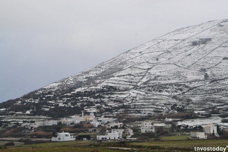Η Άνδρος ντύθηκε στα λευκά. Συνεχείς επεμβάσεις για διάνοιξη δρόμων στα ορεινά
