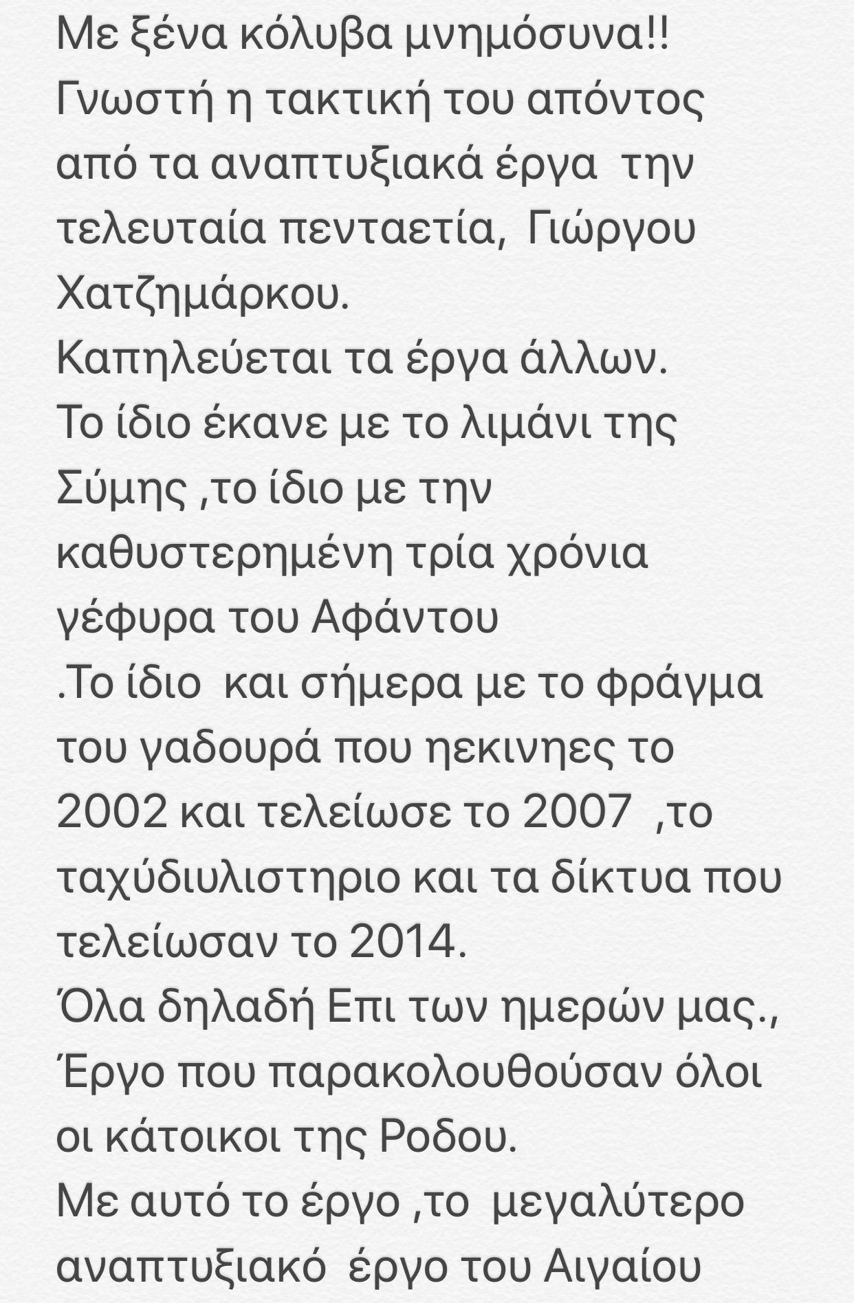 Από αυτό και μόνο προκύπτει ότι γνώριζε η Περιφερειακή Αρχή πολύ καλά τον κίνδυνο έλλειψης νερού στη Ρόδο εάν δεν λυνόταν εγκαίρως το ζήτημα της λειτουργίας του φράγματος Γαδουρά.