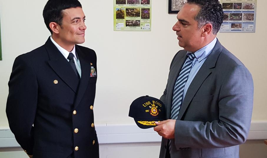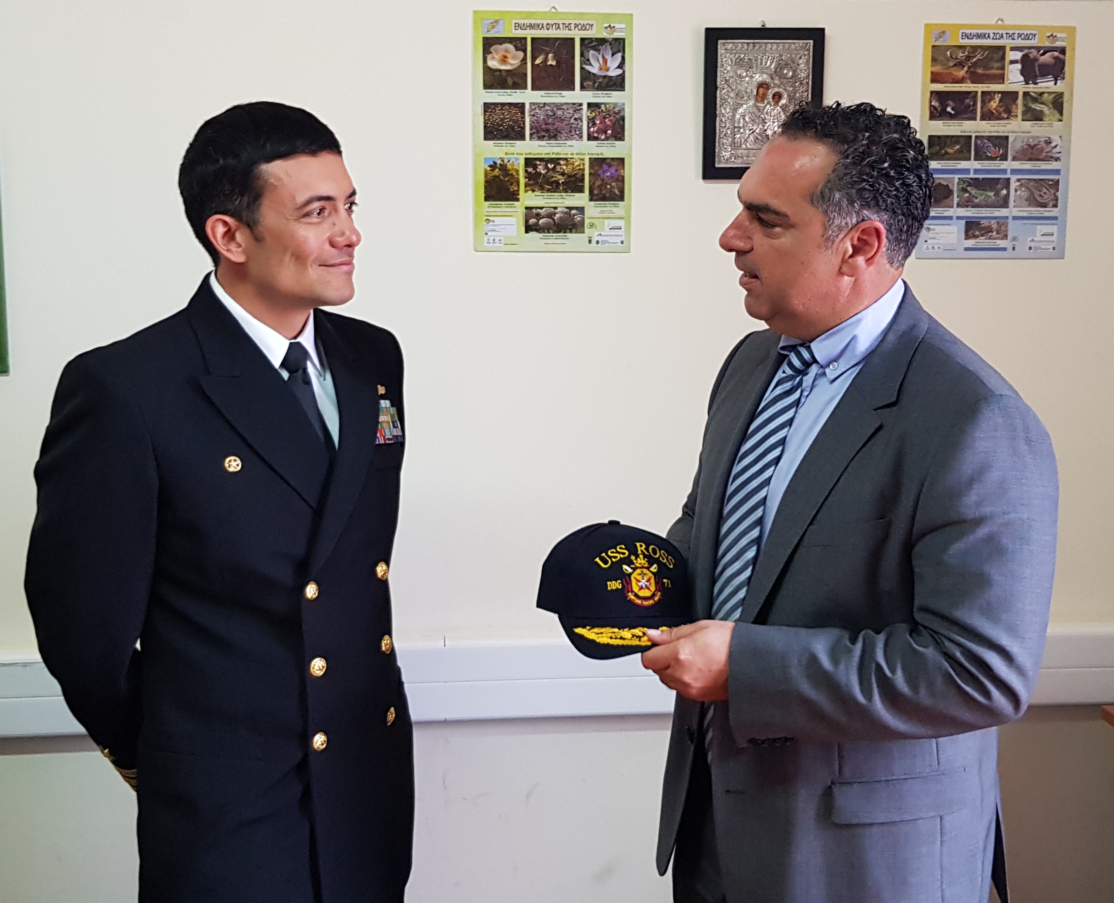 Συνάντηση με τον Αντιπεριφερειάρχη κ. Ιωάννη Φλεβάρη πραγματοποίησαν ο Κυβερνήτης David Coles και αντιπροσωπεία Αξιωματικών του USS ROSS (DDG-71) κατά την επίσκεψή τους στην Περιφέρεια Νοτίου Αιγαίου.
