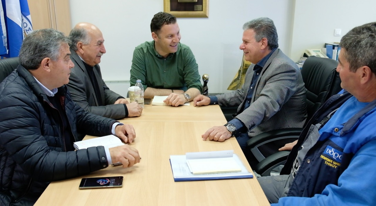 Επόμενος σταθμός στο νησί της Τήνου ήταν το Δημαρχείο του νησιού, όπου ο κ. Γλυνός είχε συνάντηση με τον δήμαρχο, κ. Ιωάννη Σιώτο, ο οποίος παρουσίασε στον υποψήφιο περιφερειάρχη την κατάσταση και τις προτεραιότητες αναφορικά με θέματα που αφορούν στην ολοκλήρωση των κατασκευών στο λιμάνι, στη διαχείριση των απορριμμάτων, στην εξέλιξη του ΒΙΟΚΑ, καθώς επίσης και σε άλλα ζητήματα τεχνικών υποδομών που απασχολούν το νησί.