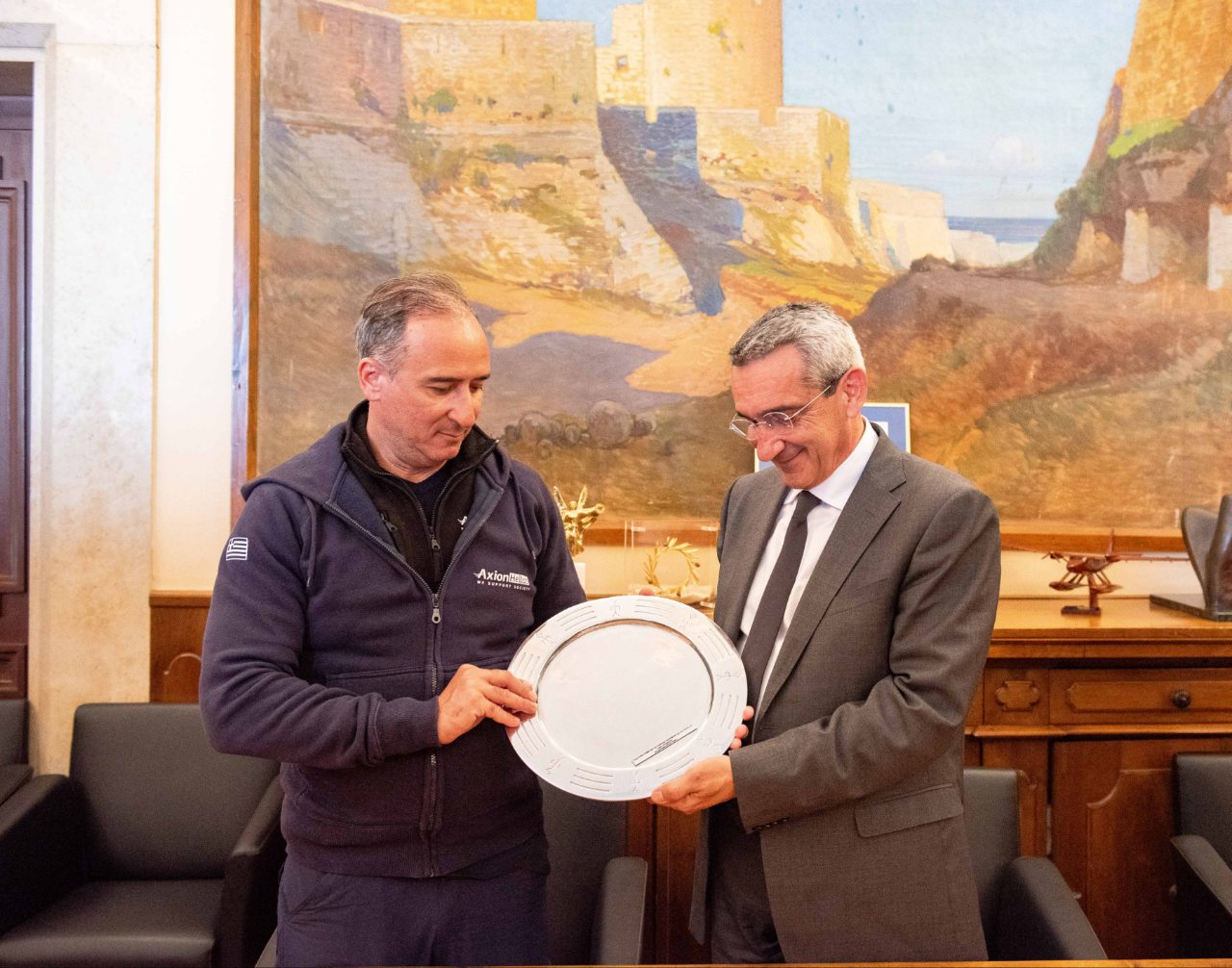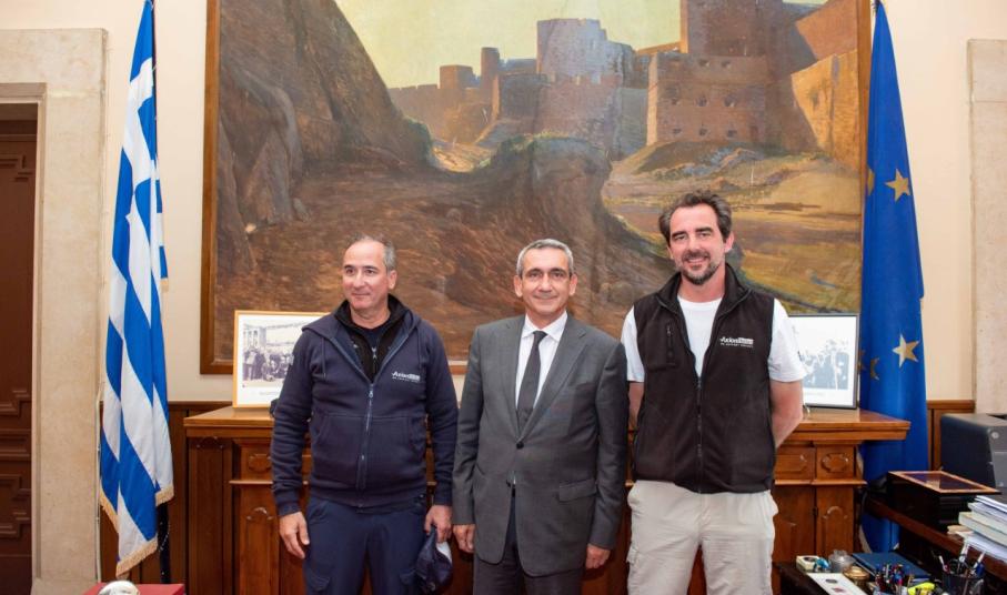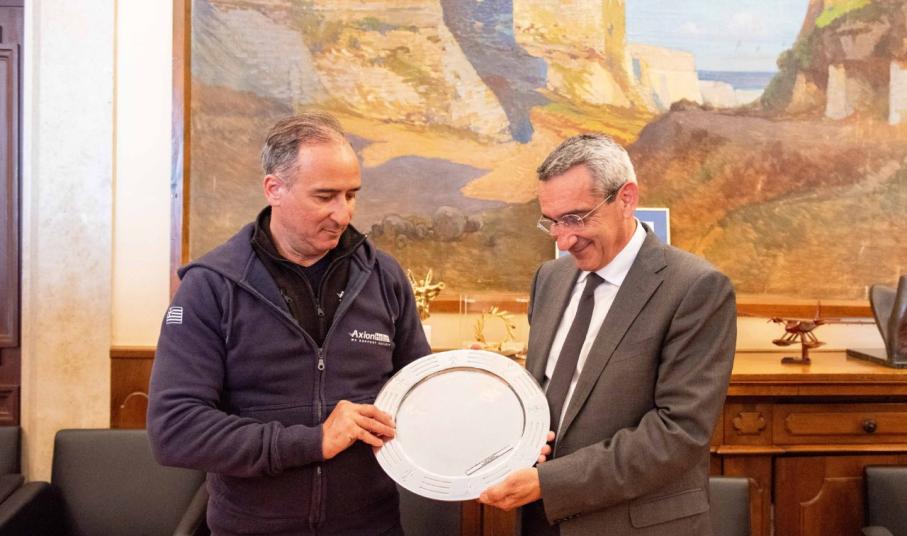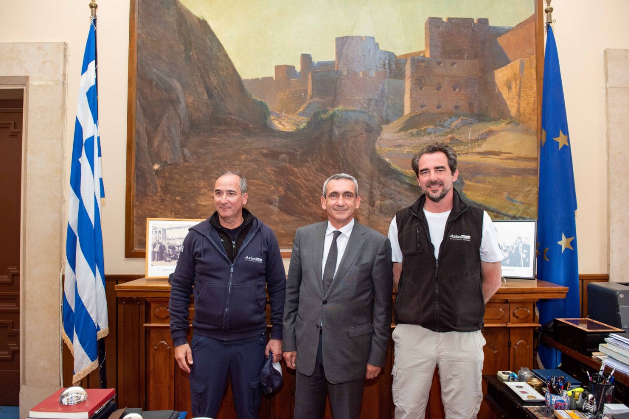 Την  πολυμελή αποστολή εθελοντών της Axion Hellas η οποία ξεκίνησε από την Αστυπάλαια, πέρασε από την Τήλο και τη Χάλκη για να κατευθυνθεί στο Καστελλόριζο. υποδέχθηκε ο Περιφερειάρχης Νοτίου Αιγαίου, Γιώργος Χατζημάρκος, το πρωί της Παρασκευής στην Περιφέρεια.