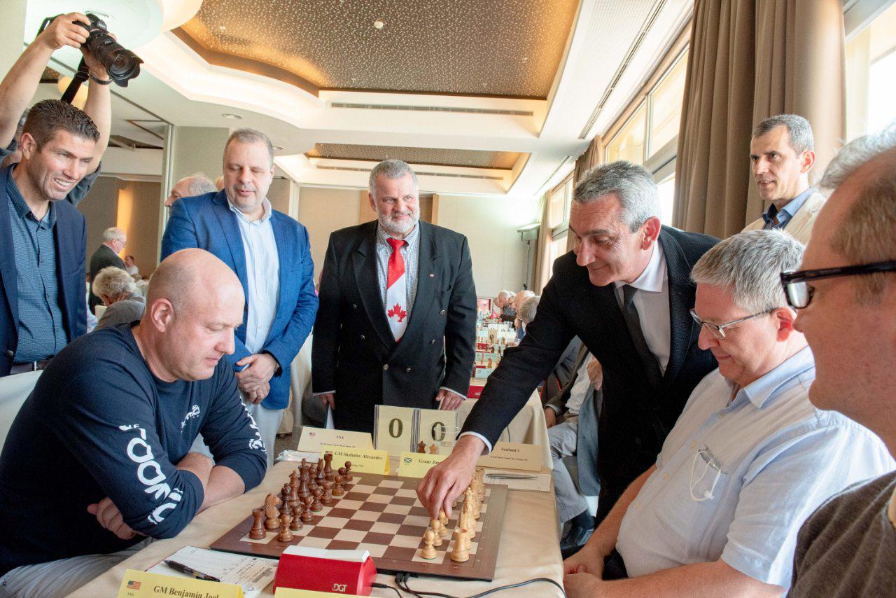 Ο Περιφερειάρχης, συνοδευόμενος από τον Εντεταλμένο Αθλητισμού Δωδεκανήσου, Περιφερειακό Σύμβουλο, Νίκο Νικολή, παρόντων των εκπροσώπων της Ελληνικής, της Ευρωπαϊκής και της Παγκόσμιας Σκακιστικής Ομοσπονδίας,  τήρησε την παράδοση και άνοιξε την πρώτη σκακιέρα στην αναμέτρηση  Σκοτία – ΗΠΑ .