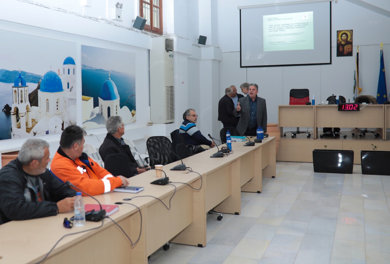 Ο κ. Ζώρζος αναφέρθηκε και στην υδατική επάρκεια του νησιού από τις λειτουργούσες αφαλατώσεις αλλά και την πιεστικά ανερχόμενη ζήτηση νερού λόγω της αύξησης των τουριστικών αφίξεων, ενώ έθεσε επίσης την ανάγκη αναβάθμισης των έξι ΒΙΟΚΑ της Θήρας-Θηρασιάς, τη διαχείριση των στερεών αποβλήτων καθώς και τις προσπάθειες που καταβάλλει ο Δήμος για την απόκτηση εναλλακτικού λιμένος βόρεια ή νότια του νησιού, βάσει των προτάσεων που θα καταθέσουν οι εμπλεκόμενοι φορείς. Τέλος ο δήμαρχος ενημέρωσε τον κ. Γλυνό και τους συνεργάτες του, για την εκπονούμενη μελέτη φέρουσας ικανότητας του νησιού, το οποίο ήδη παρουσιάζει φαινόμενα υπερδόμησης σε βάρος της απομένουσας παραγωγικής γης. Ο κ. Μανώλης Γλυνός, διαβεβαίωσε ότι ως αυριανή περιφερειακή αρχή, μέσα από συνεργασία και συνέργεια με τους δημάρχους όλων των νησιών, θα δρομολογηθούν λύσεις και για όλα τα ανοιχτά ζητήματα επ ωφελεία των δημοτικών αρχών αλλά και των κατοίκων των νησιών.