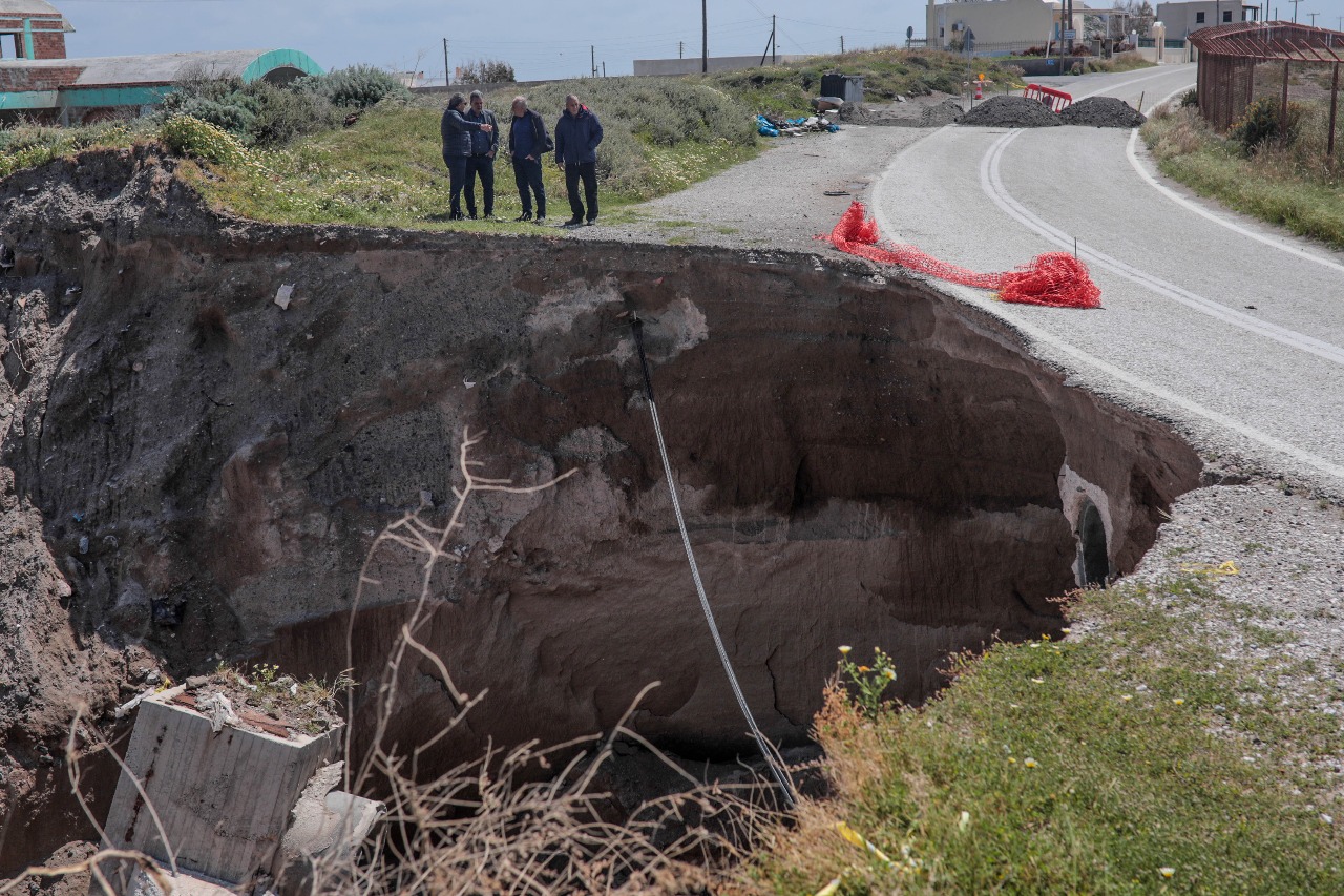 Ο δήμαρχος ενημέρωσε επίσης τον κ. Γλυνό για το σοβαρότατο θέμα των πρανών της Καλντέρας, καθώς στο σημείο των κατολισθήσεων έχει τοποθετηθεί πλέγμα, αλλά παραμένει ανοιχτό το ζήτημα του θρυμματισμού των ογκολίθων που έχουν συσσωρευτεί στο προστατευτικό πλέγμα. Ένα άλλο ζήτημα είναι η κατάσταση του επαρχιακού δικτύου -αρμοδιότητα της Περιφέρειας Νοτίου Αιγαίου- καθώς παραμένει αδρανής η εργολαβία του οδικού δικτύου Αεροδρομίου – Οίας, έργο του οποίου η Περιφέρεια είναι φορέας χρηματοδότησης.