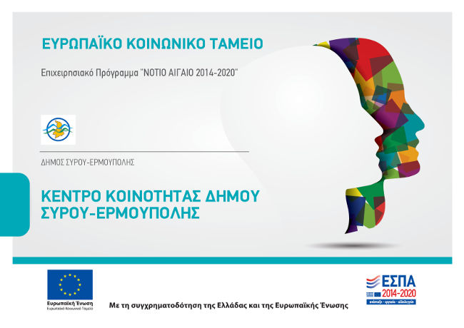 Το Κέντρο Κοινότητας Δήμου Σύρου Ερμούπολης, με απόφαση του Περιφερειάρχη, είχε ενταχθεί στο Επιχειρησιακό Πρόγραμμα «Νότιο Αιγαίο 2014-2020», τον Αύγουστο του 2016, με αρχική επιλέξιμη δημόσια δαπάνη ύψους 164.160, 00 €, για την λειτουργία του κατά την τριετία από 10/11/2016 έως 10/11/2019. Ξεκίνησε τη λειτουργία του τον Αύγουστο του 2017 και ο αριθμός των ωφελουμένων ανέρχεται σε 1.350 άτομα.