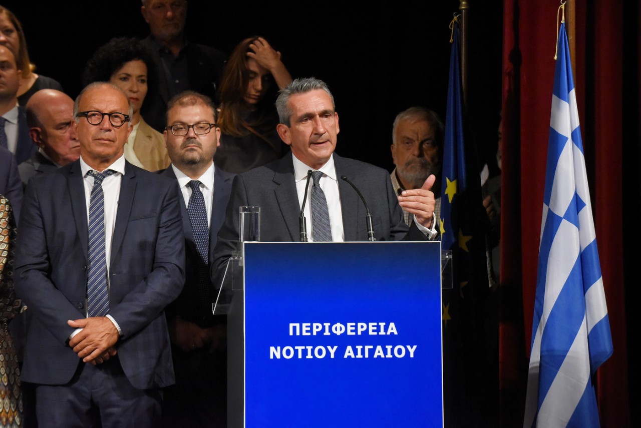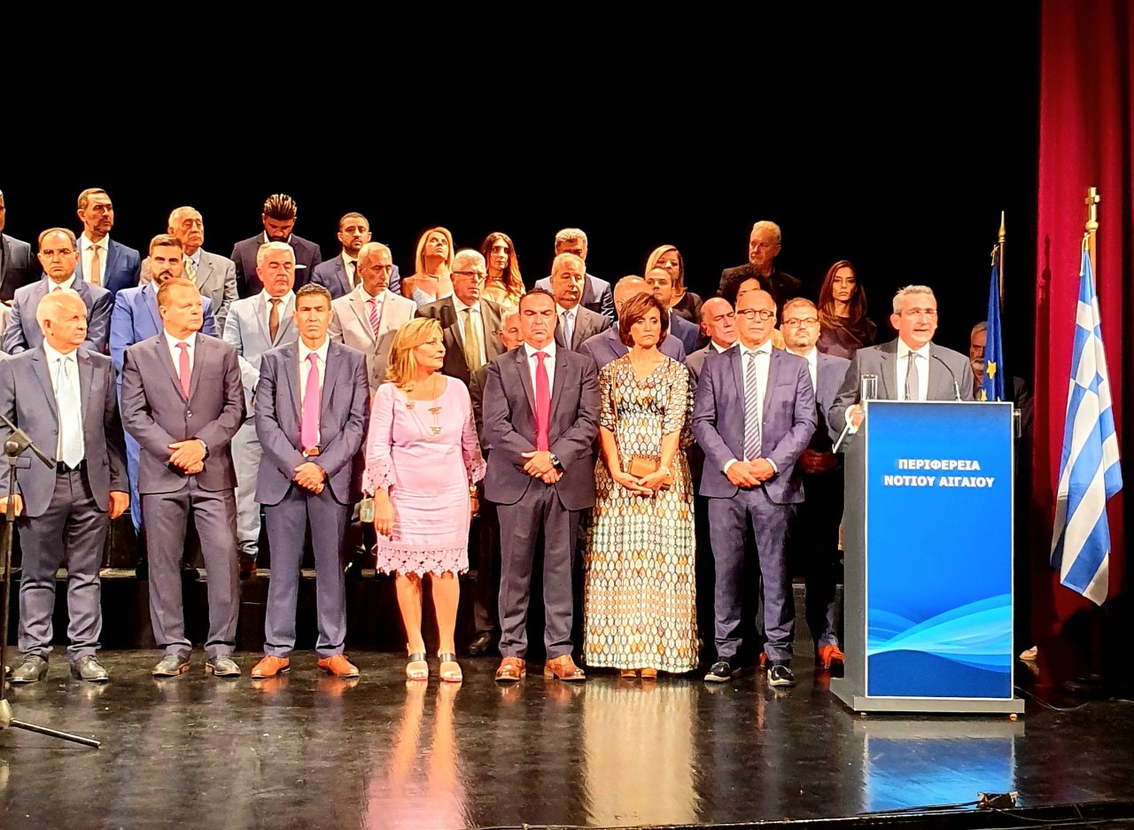 Πραγματοποιήθηκε στο θέατρο “Απόλλων” η τελετή ορκωμοσίας του Περιφερειάρχη Ν. Αιγαίου, Γιώργου Χατζημάρκου και των μελών του νέου Περιφερειακού Συμβουλίου το απόγευμα του Σαββάτου, στο πλαίσιο της καθιερωμένης τελετής, παρουσία κυβερνητικών προσώπων, εκπροσώπων φορέων και Αρχών από τους νομούς Κυκλάδων και Δωδεκανήσου.